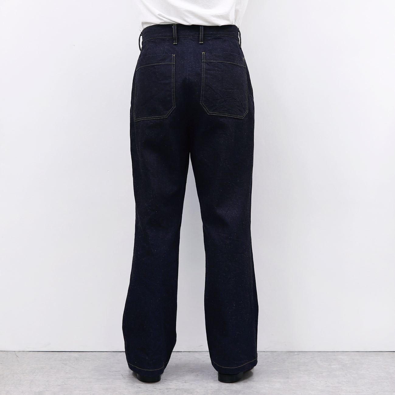 Bootcut denim pants made from 12oz denim fabric. Designed with a flattering flare silhouette that tapers from the hips to the knees and gently widens from the knees to the hem. Soft-washed for a comfortable texture, this pair combines classic style with ease of wear.
