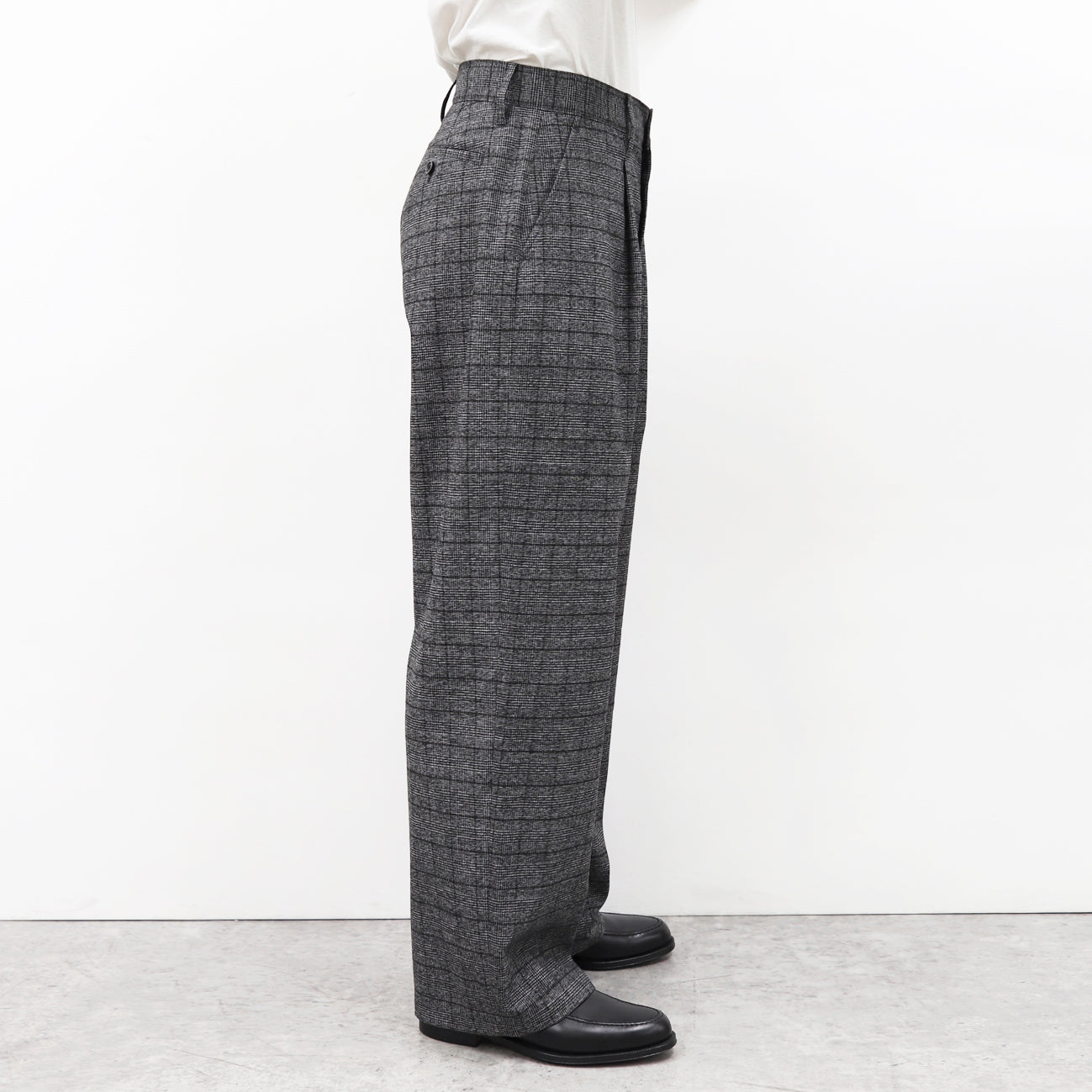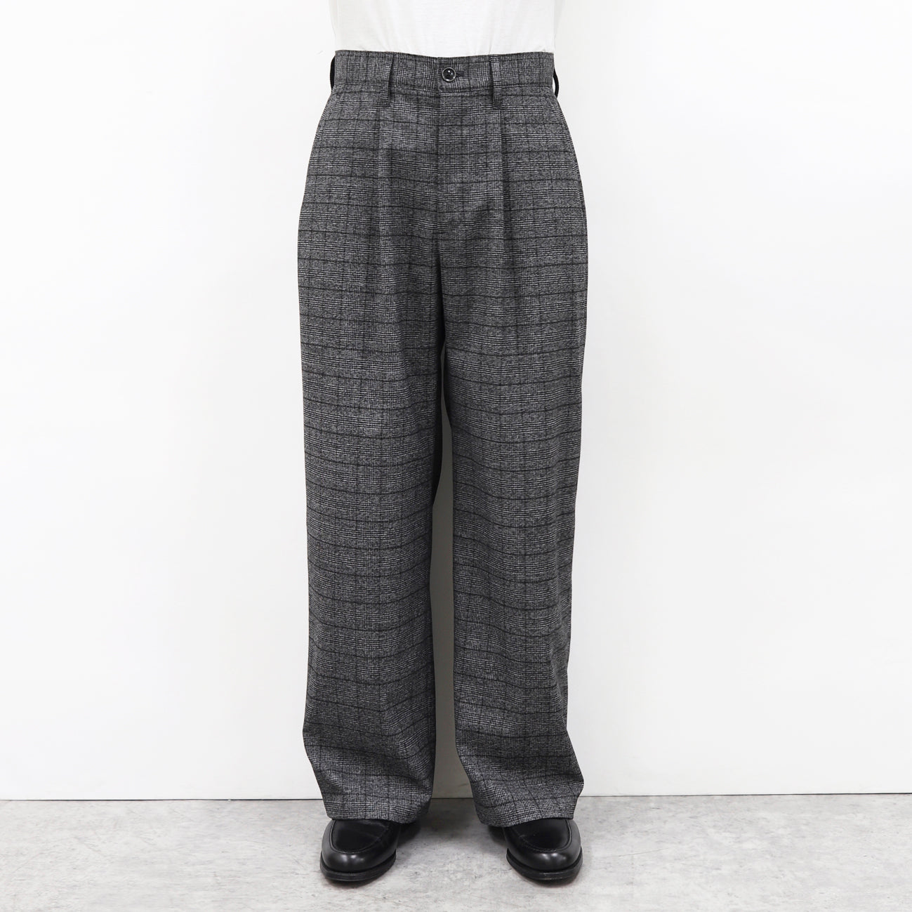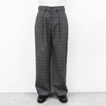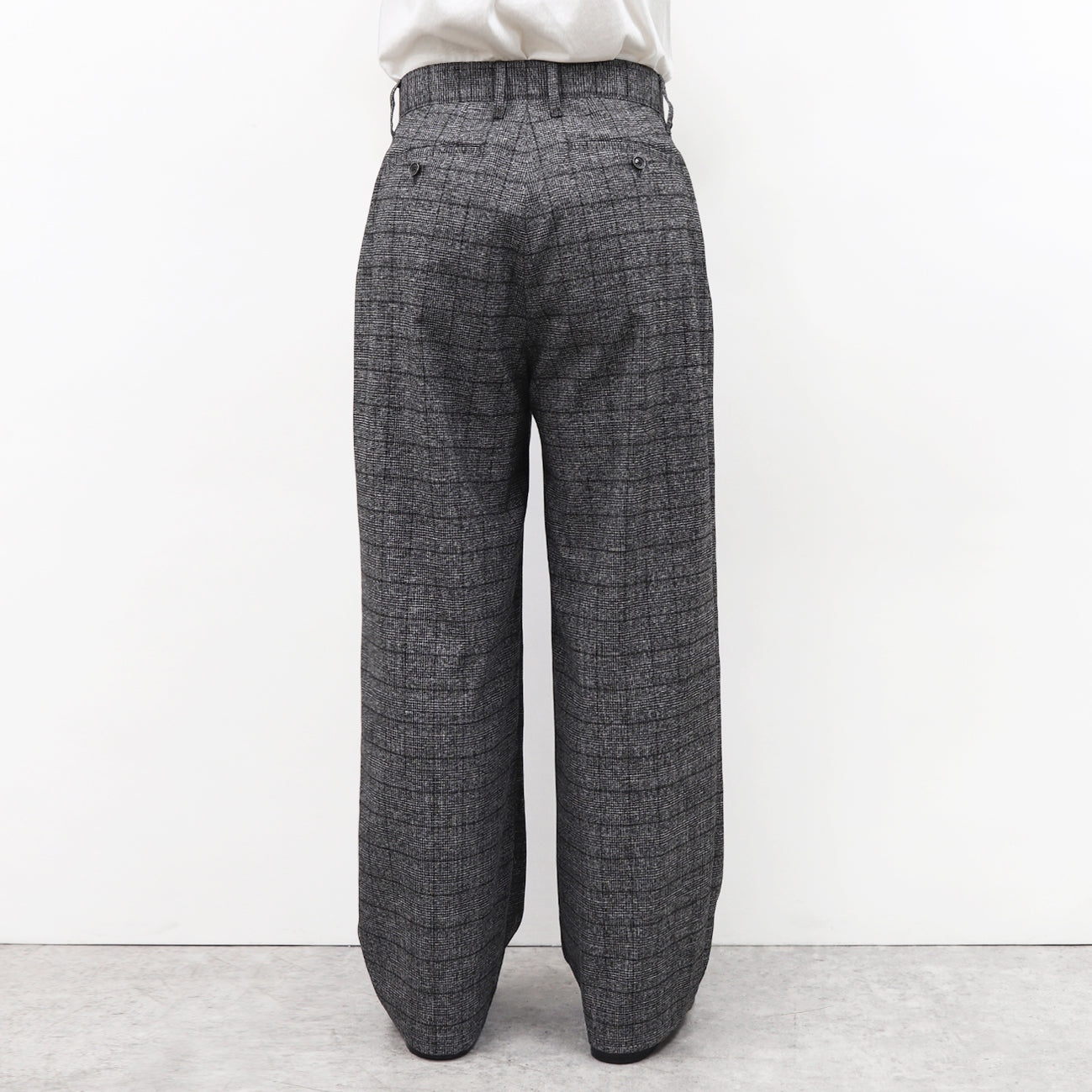 These wide trousers are crafted from T/R fabric, which provides a soft, wool-like texture with an elegant sheen. The design features a straight line from the hip to the knee, gradually tapering down to the hem for a refined silhouette.