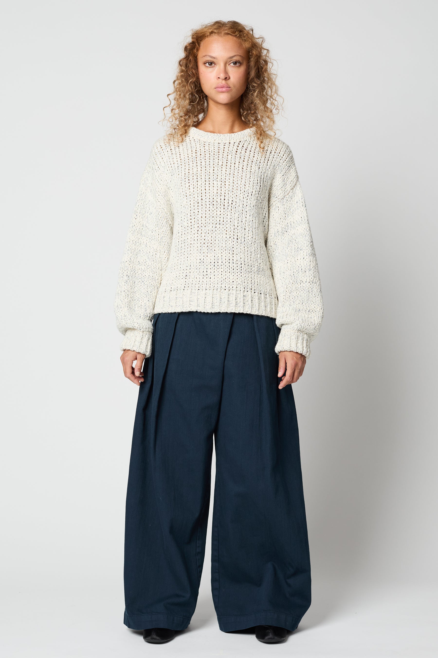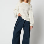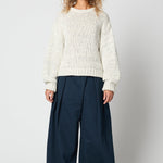 An Atelier Delphine icon reimagined in our textured loose knit cotton for the Spring Summer 25 season. Our textured loose cotton has an addictively soft hand, and luxurious drape. The Balloon Sleeve is a cropped crewneck sweater with tapered voluminous sleeves and a relaxed body. A wardrobe staple for the Atelier Delphine woman – romantic, minimal, and effortless.