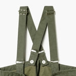 These versatile over pants combine cargo-style width with jogger-style adaptability using drawstring hems. The removable shoulder straps allow for conversion between a bib style and standalone pants, making them ideal for both men and women. The unique garment-dyed finish and lightweight, high-density cotton provide a breathable yet durable construction perfect for warm weather, while also suitable for spring and autumn wear.
