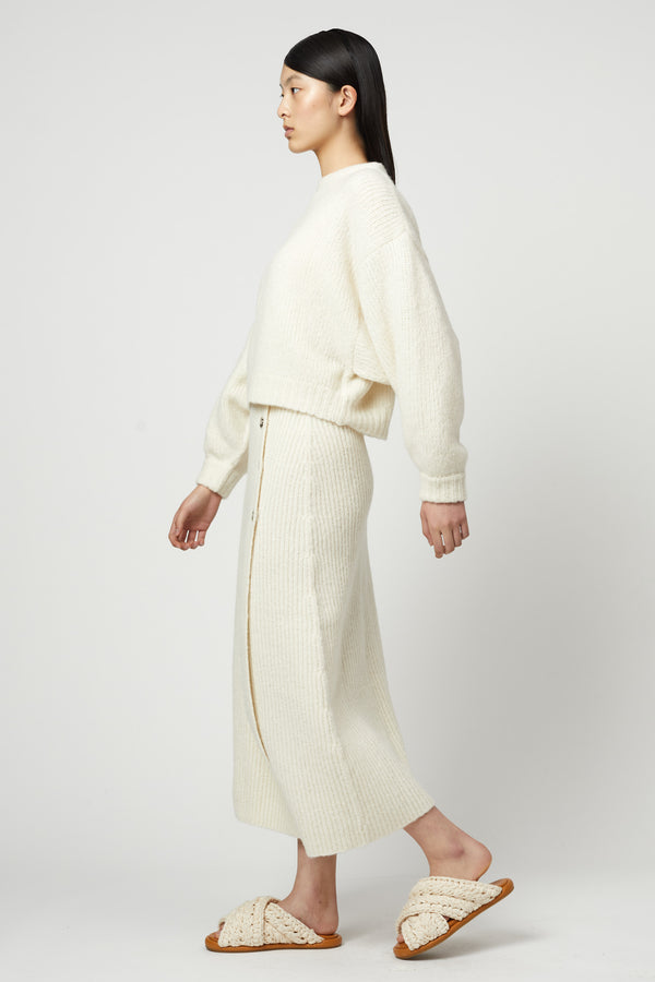 The "Balloon Sleeve" by Atelier Delphine is a cropped crewneck sweater that debuts in fresh colors for the Fall 2024 season. It features tapered voluminous sleeves and a relaxed silhouette, making it a wardrobe staple for women who appreciate a romantic and minimalist style.