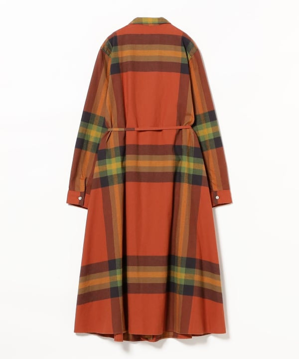 This dress features a bold yet elegantly balanced tartan pattern in refined color tones, designed for sophisticated everyday wear. A self-fabric belt at the waist allows you to create flattering blousing or cinch the silhouette to suit your mood. The fabric is woven from high‑quality yarn‑dyed combed cotton and finished with a gentle brushed nap for a soft touch and elevated feel—casual but not casual‑looking.