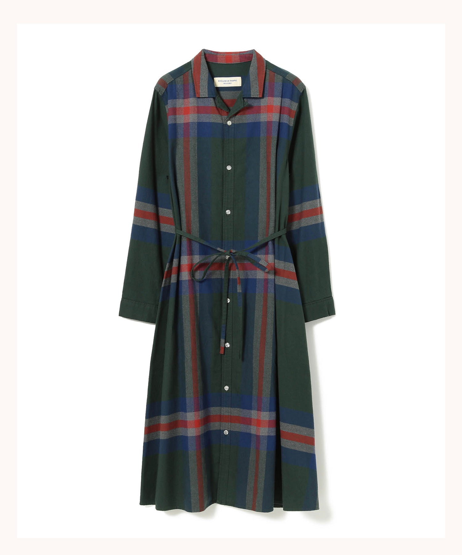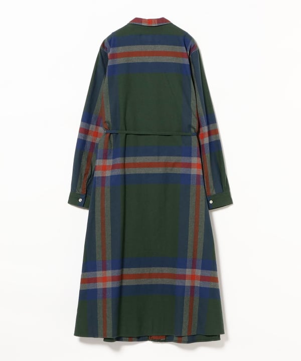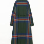 This dress features a bold yet elegantly balanced tartan pattern in refined color tones, designed for sophisticated everyday wear. A self-fabric belt at the waist allows you to create flattering blousing or cinch the silhouette to suit your mood. The fabric is woven from high‑quality yarn‑dyed combed cotton and finished with a gentle brushed nap for a soft touch and elevated feel—casual but not casual‑looking.