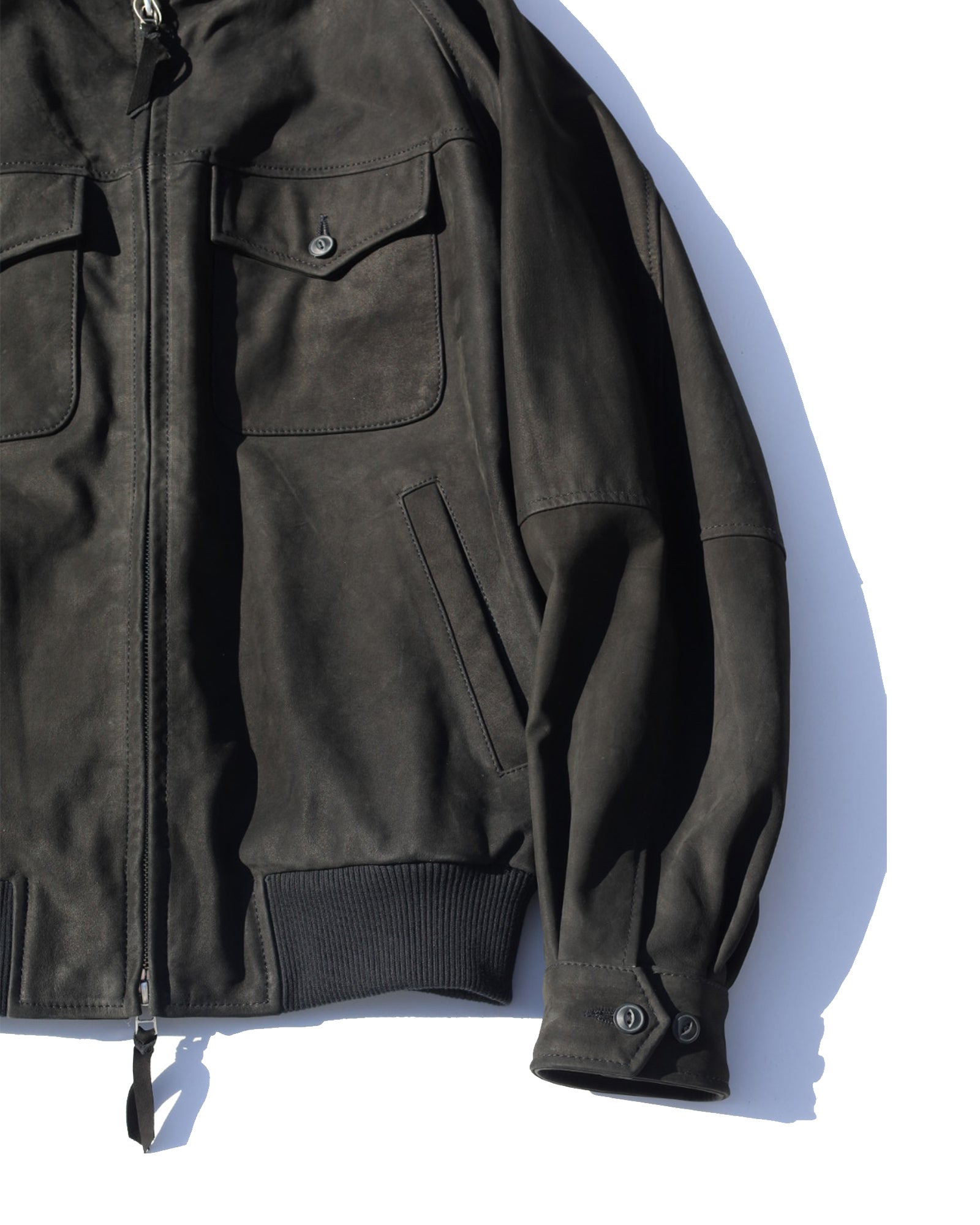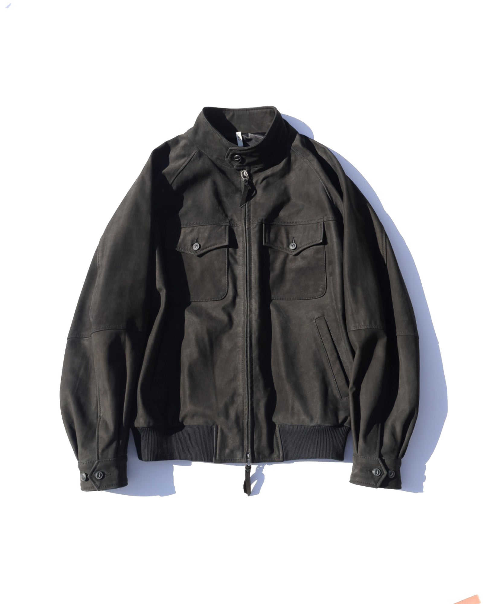 This blouson seamlessly blends American and British design elements. Drawing inspiration from classic Harrington jackets and Drizzler jackets, it incorporates features such as rounded shoulders and tucked cuffs, which soften the appearance of the leather. These details create a three-dimensional, relaxed silhouette that exudes comfort and sophistication.