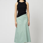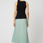 Longer, straight, tailored skirt in our drapey bio washed twill (softer than standard twill!). Wear back to our organic jersey tank top for sporty warm weather polish.