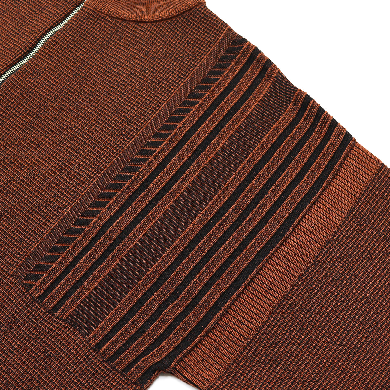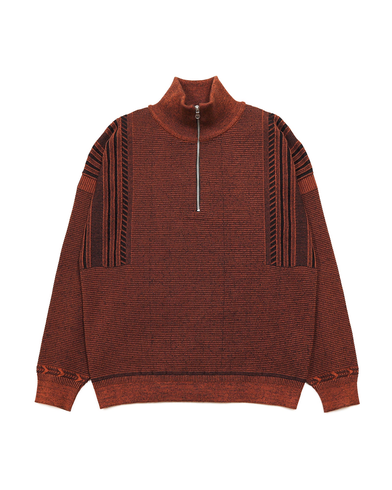 Every season, the designer develops a collection with a story that is constructed based on the landscape of the heart of the designer. The knitted fabrics made by skilled technicians and the patterns inspired by the natural scenery are unique and very high quality.