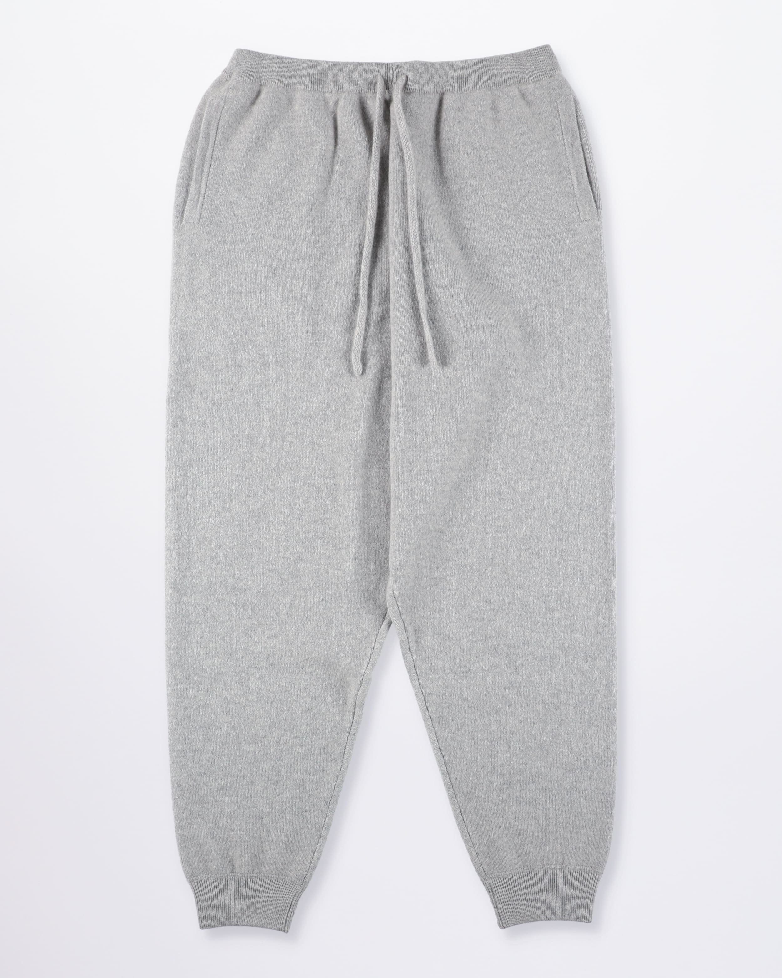 This heavyweight sweatpants is crafted from 100% cashmere. By bundling ultra-fine cashmere fibers and using a densely knitted technique, it achieves exceptional durability while remaining lightweight and supple. Thicker than standard knitwear, the cuffs and hem feature reinforced ribbing with higher tension.