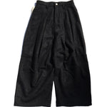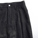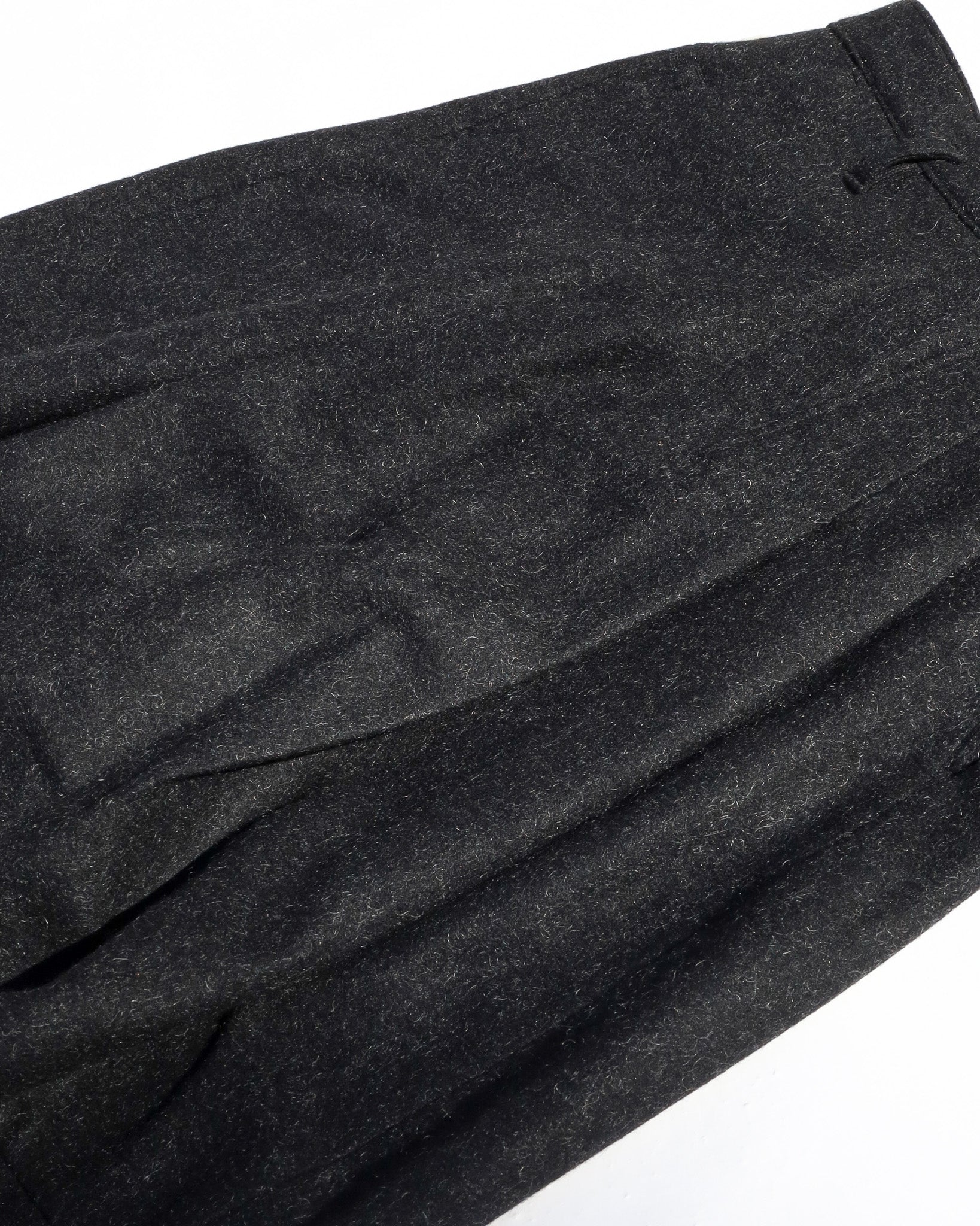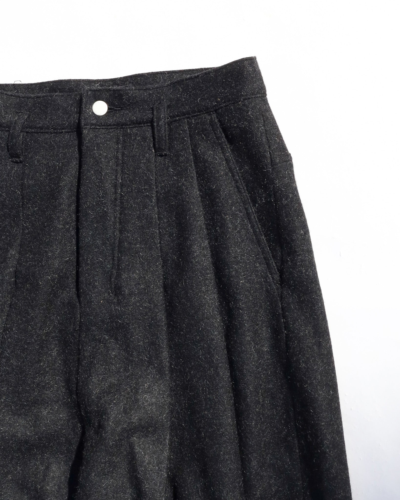 Crafted in Japan from a luxurious mohair and wool blend, the Hi, Baggy Pants elevate relaxed tailoring with a touch of refined texture. The 10/90 mohair/wool fabric delivers a lightweight yet warm hand-feel with a soft sheen and excellent drape. Voluminous proportions and minimalist construction make these pants a standout in any modern wardrobe.