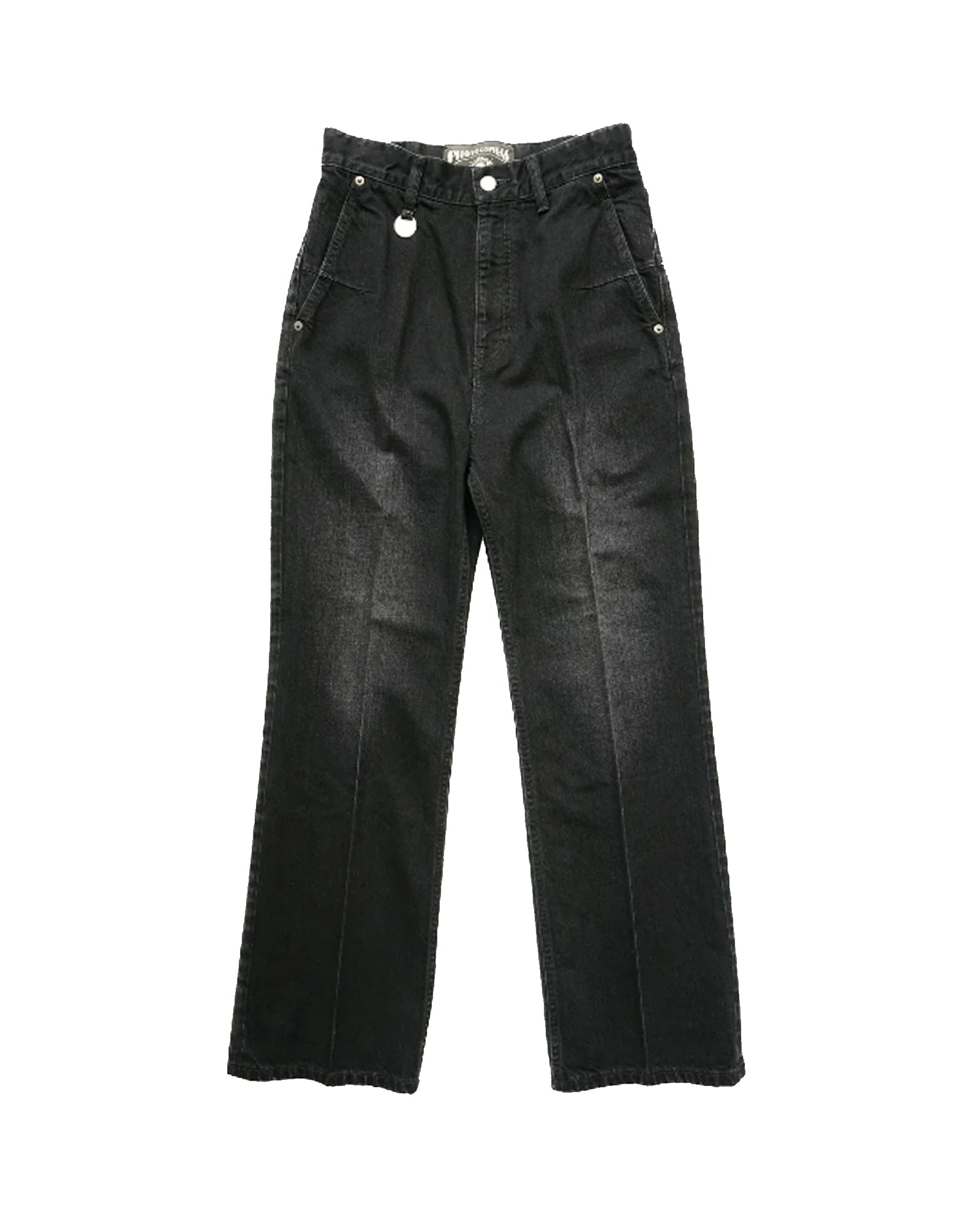 The most popular item from Photocophieu, known for its beautiful silhouette. Designed to elongate the legs, it combines the elegance of trousers with the casual appeal of denim. The unique dart placement not only enhances the silhouette but also adds a stylish accent. Made from 12 oz durable fabric, it is designed to age gracefully over time.