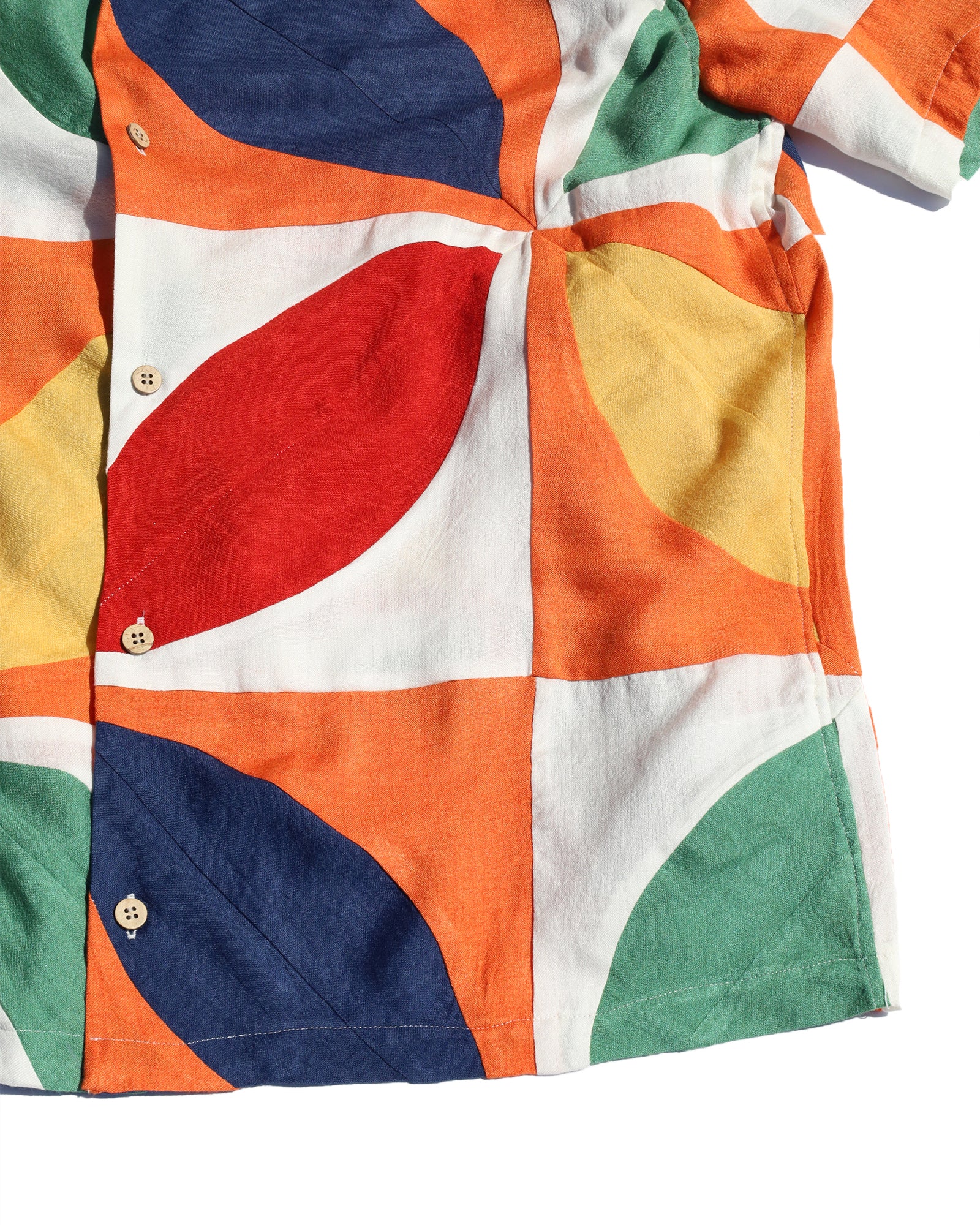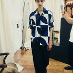 This signature patchwork shirt from KHOKI draws inspiration from American quilt patterns. The collar is designed with a leather string that allows you to adjust it between an open-collar and a regular-collar look, adding both versatility and flair to your outfit.