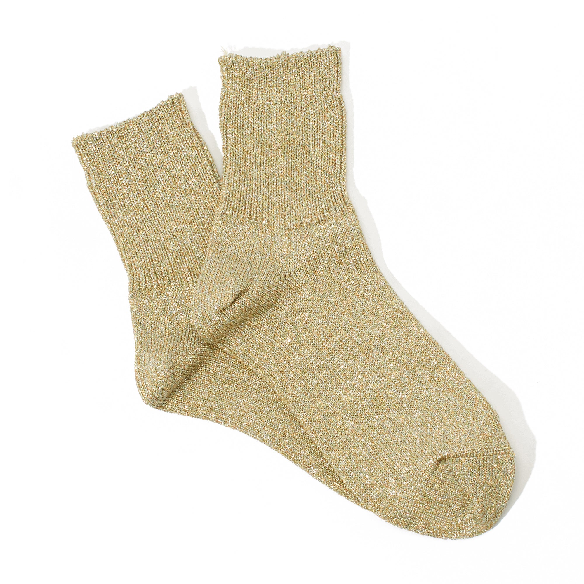 Crafted on a low-gauge machine, these stretchy socks combine a relaxed fit with a touch of glam. The mixed-color glitter yarn adds depth to the simple design, creating a unique sparkle. The crisp yarn keeps your feet cool, making them ideal for wearing with sneakers, leather shoes, or even sandals.