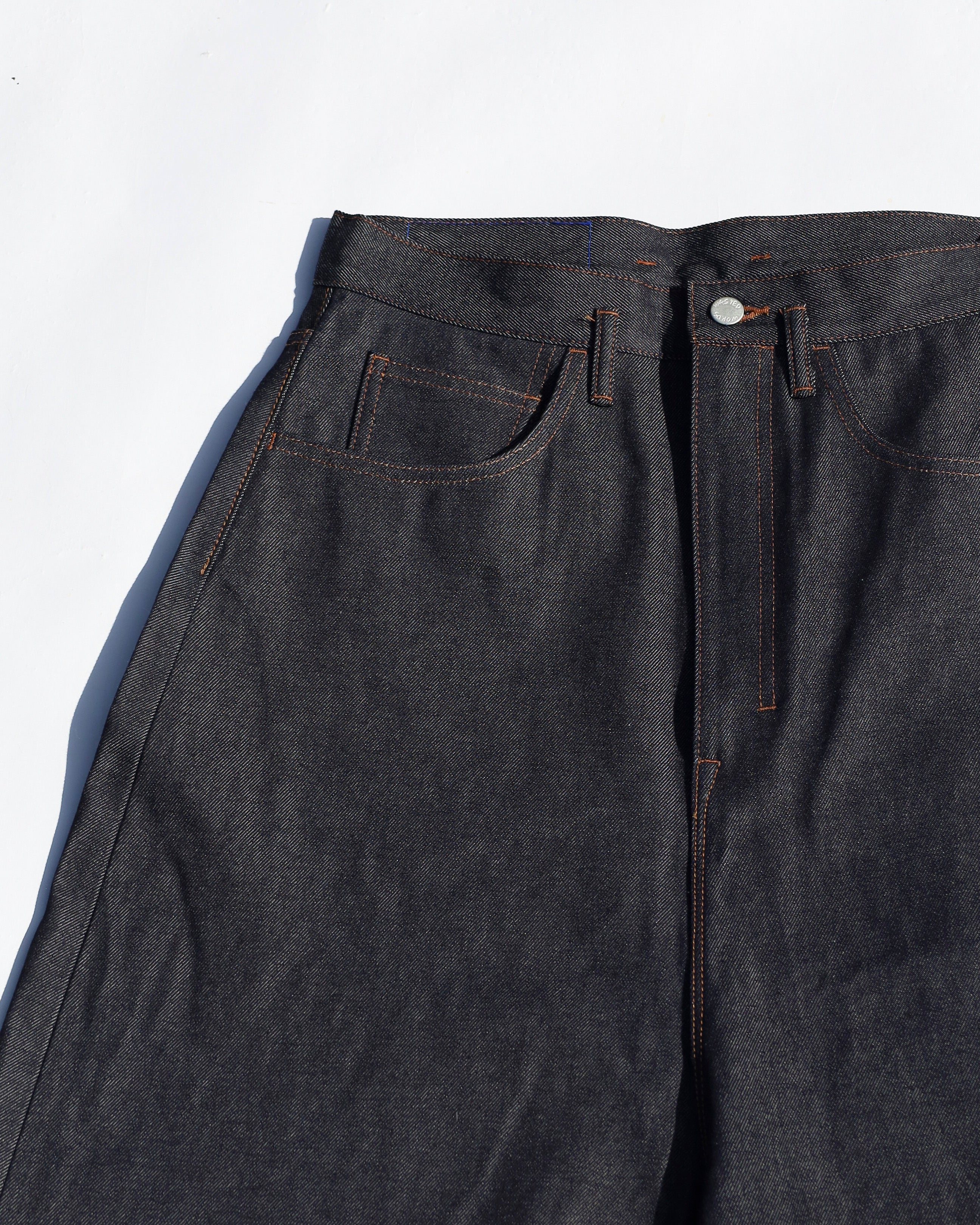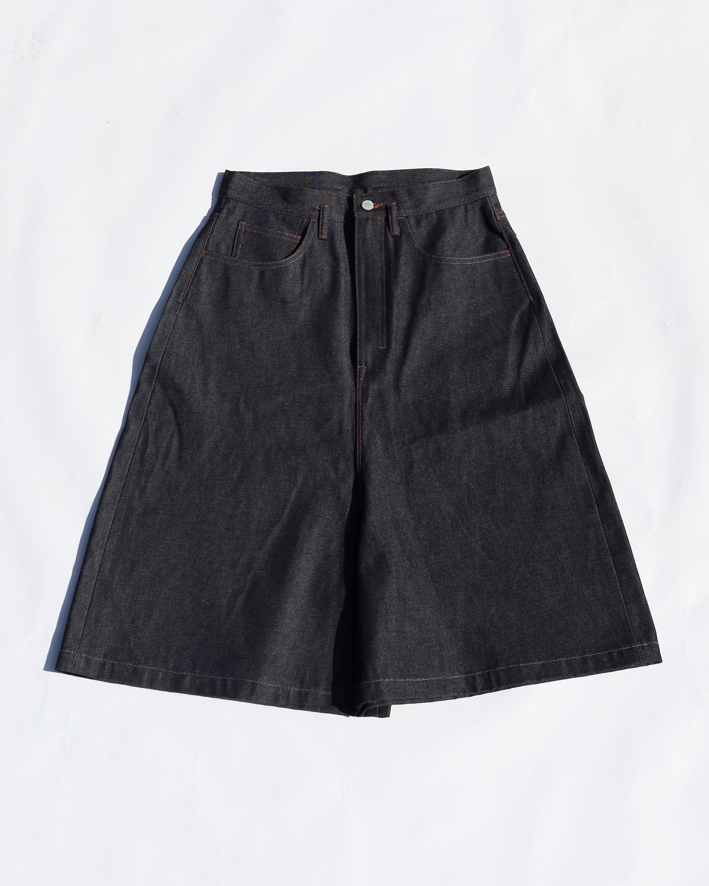 The classic LOOSE silhouette has been reimagined into a knee-length shorts design, combining bold proportions with everyday versatility. Featuring a strikingly deep rise and a distinctive cylindrical shape, this piece delivers a strong yet balanced presence. Crafted from durable 13.3oz denim, it offers structure, character, and long-lasting wear.
