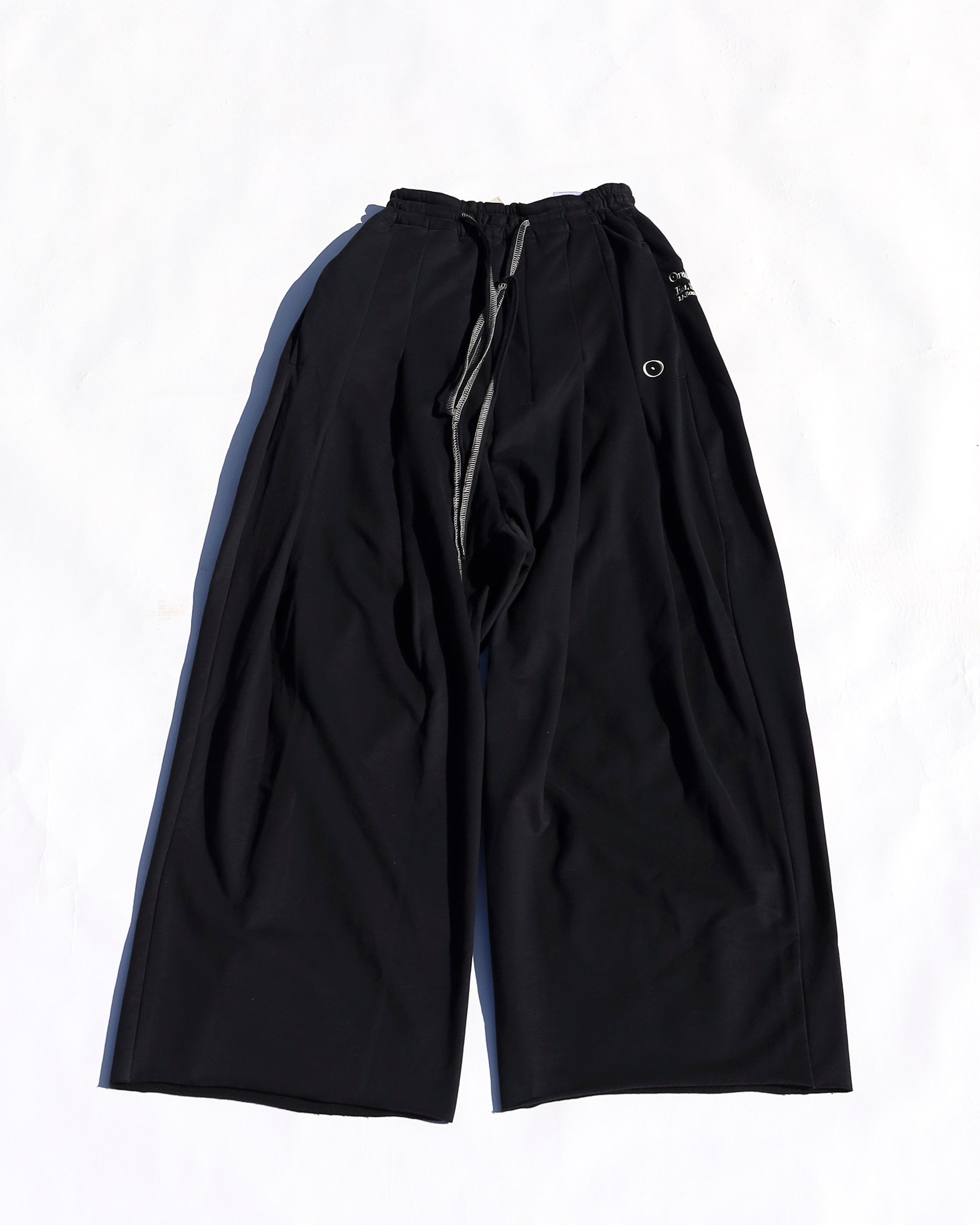 A relaxed essential from the Ordinary Life line, the Ordinary Home Baggy is presented in a versatile black colorway for effortless everyday styling. Designed with two deep tucks and a long center seam, it delivers a clean waist appearance while forming a bold, wide silhouette. Lightweight and breathable with a spring–summer fleece lining, this piece ensures comfort even during warmer seasons.