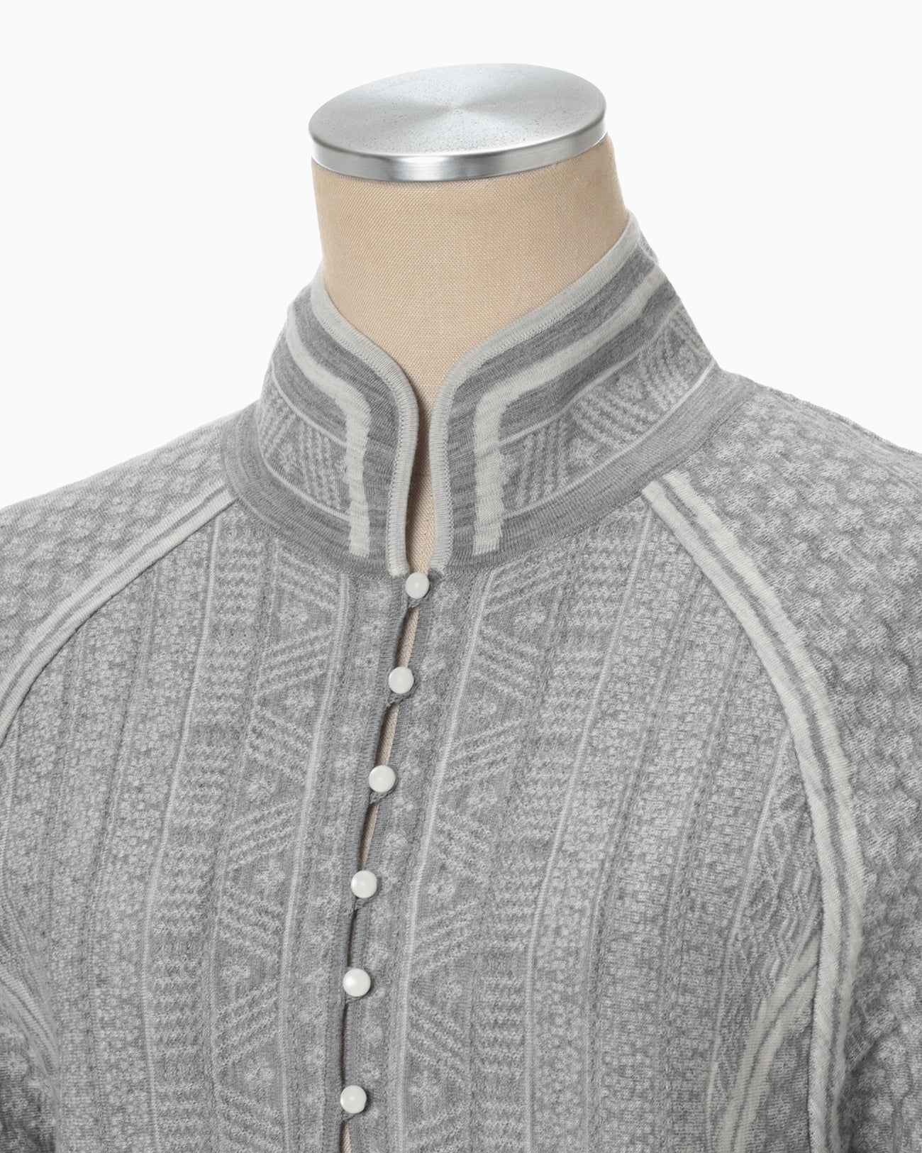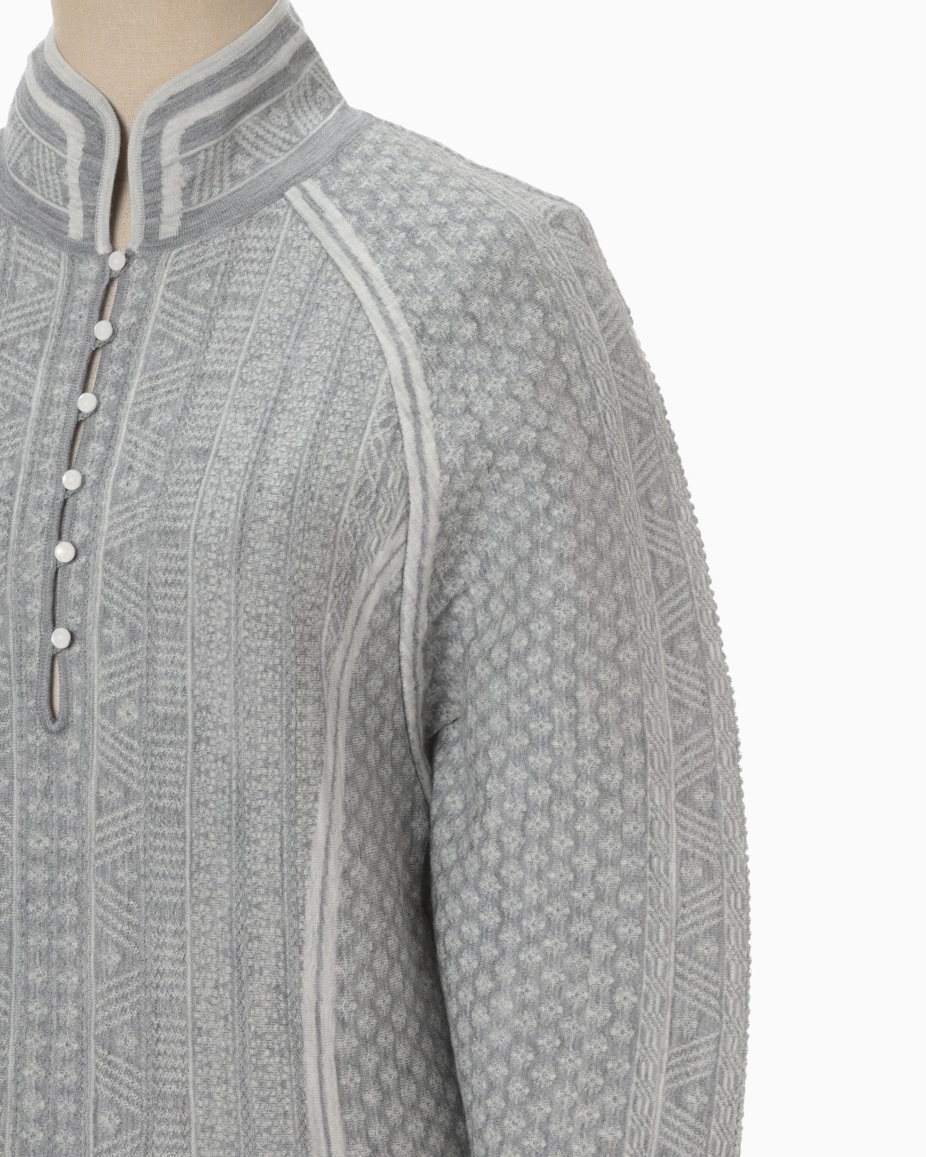 • Intricate knitting inspired by Mishima Karatsu pottery adds depth and texture, creating a unique, three-dimensional effect.