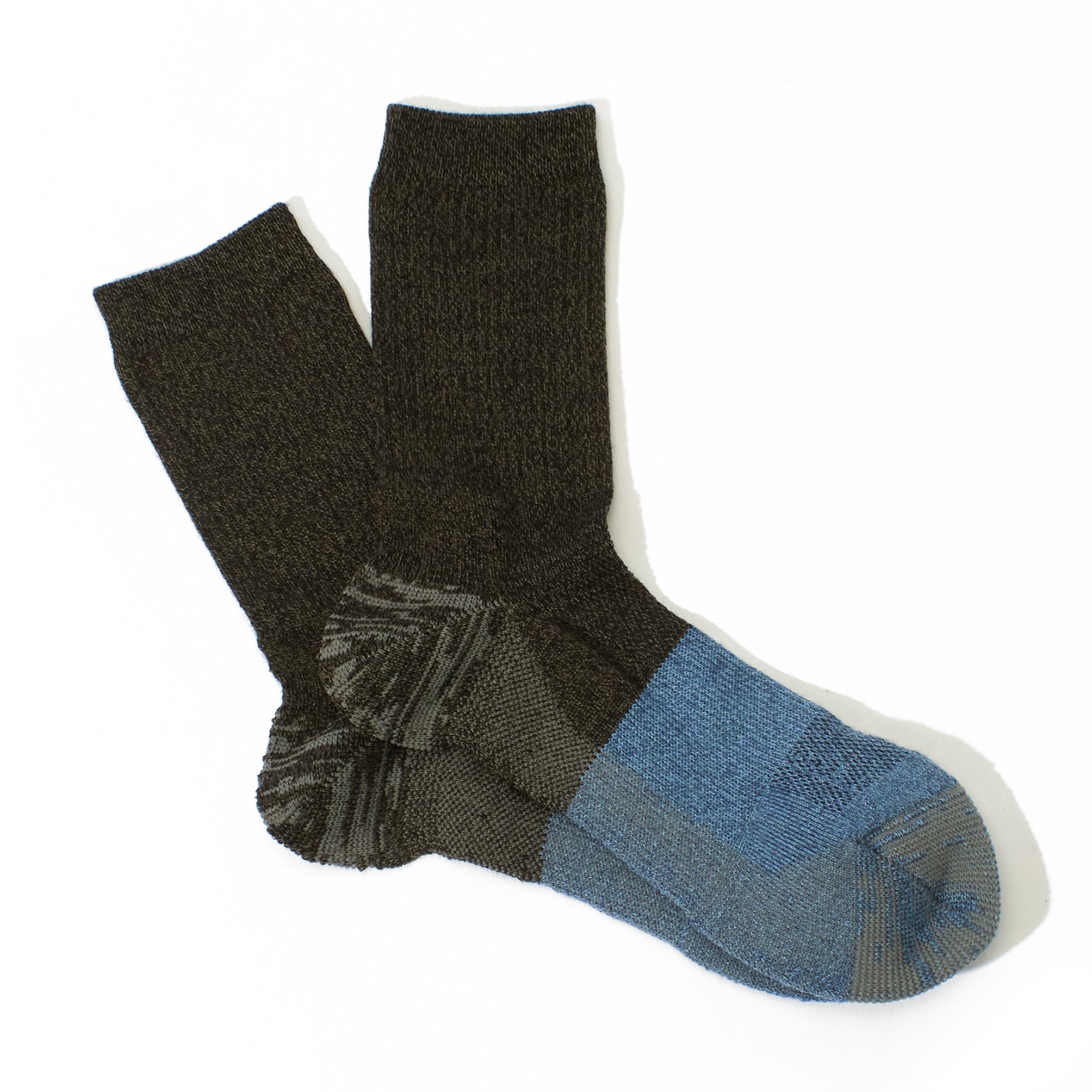 One of the few sport-style socks at Anonymous Ism, the MOC Pile half features a cushioned sole with pile knitting for added comfort. Support is woven in at the heel, ankle, and arch for a secure fit, while nylon reinforcements from heel to toe enhance durability, making these socks both comfortable and tough.