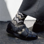 Crafted on a vintage Jacquard machine, these socks offer excellent stretch and an easy, comfortable fit. The unique pattern is created by combining different knit textures, resulting in a rich, dimensional design. The thick, durable fabric showcases intricate multicolor detailing, while the classic herringbone motif is reimagined with a fresh, modern twist. Made from a luxurious blend of cotton, rayon, and silk, these socks provide a smooth, refined feel with every wear.
