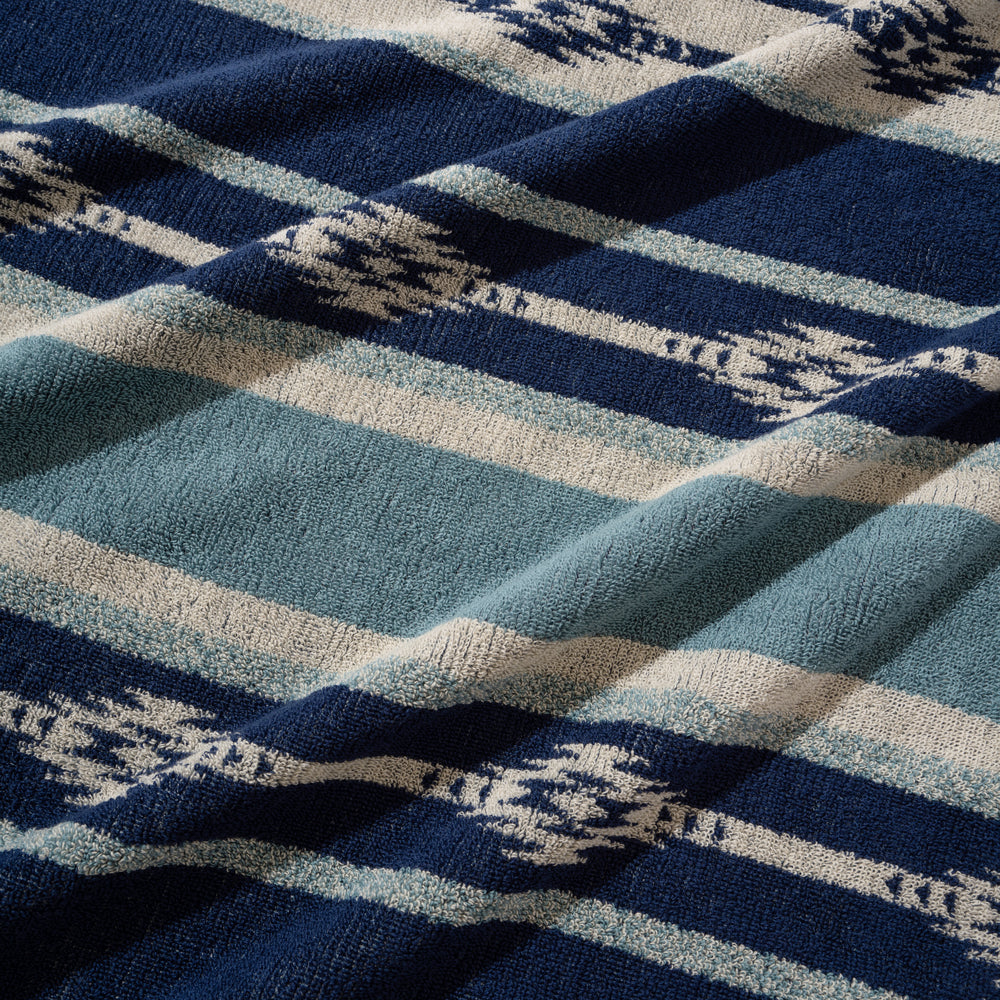 The design is crafted using a yarn-dyed jacquard weaving technique, where threads are dyed prior to weaving, rather than using prints. While this process requires extra time and effort, it results in deep, vibrant colors that resist fading even after repeated washing, allowing you to enjoy its lasting quality and refined appearance for years to come.