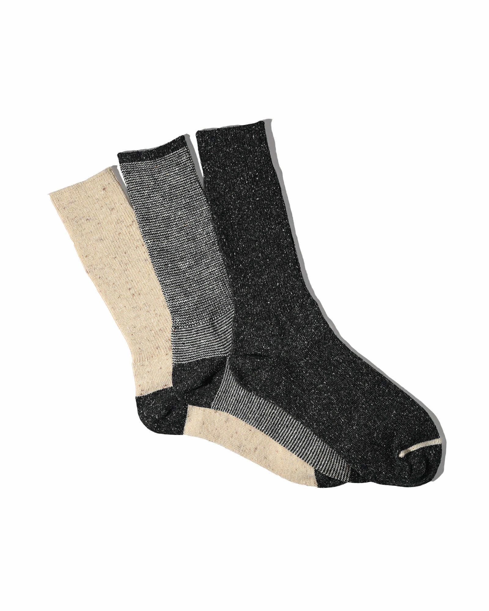 This value-packed 3-pair set offers both versatility and style. Crafted with nep yarn, each pair features a rich, textured finish that adds character to any look. With a mix of easy-to-style solid colors and classic stripes, you can switch things up to suit your mood. Perfect for everyday wear—and makes a thoughtful, ready-to-give gift as well.