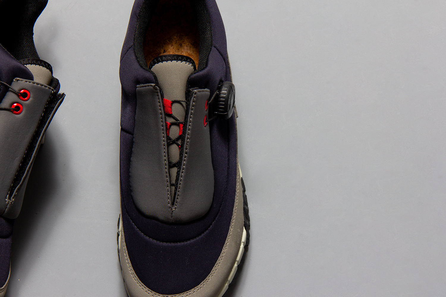INTERCEPTOR is characterized by its avant-garde design, and is a shoe with a design that has probably never been seen before except by a few die-hard NIKE enthusiasts. The appeal of this shoe is its minimalist and innovative design, by covering the narrow laces with a shroud. The upper is made of neoprene, which has excellent elasticity and elasticity and is also used in wetsuits. When you put your feet in, you can feel the unique fit and lightness. The sole uses Vibram's Trek sole. It has excellent anti-slip and abrasion resistance, so you can wear it outdoors without hesitation. This pair is perfect for active occasions, but also for striding around familiar streets with clean pants.