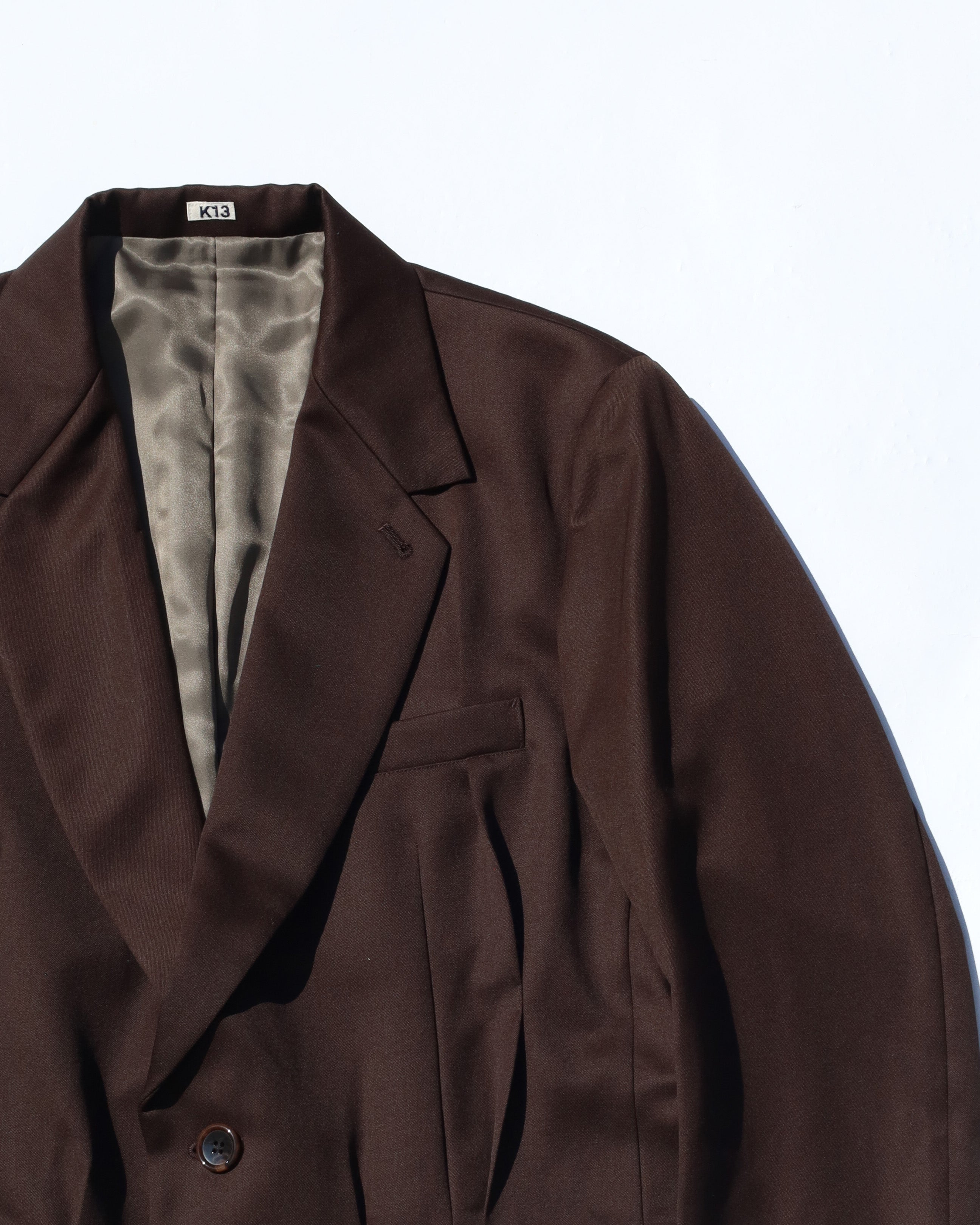 The Pleated Jacket from KHOKI brings subtle innovation to a classic silhouette. Made from the brand’s signature wool gabardine, this tailored piece features a refined tuck design that has evolved from previous seasons. With fewer pleats than its FW24 predecessor, the result is a clean yet slightly off-kilter form that plays with proportion and movement. Designed to pair seamlessly with matching pieces, it’s a set-ready staple with a unique twist.