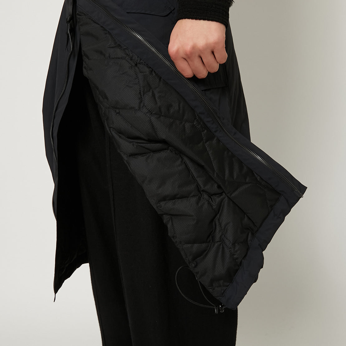This overskirt is ideal for outdoor activities in cold climates or as daily winter wear. It provides high warmth with its insulated design, and is tailored for layering, allowing it to adapt to various styles. The waist adjuster enables quick and easy size adjustments with a single motion, ensuring a secure fit even when carrying heavy items in the pockets.