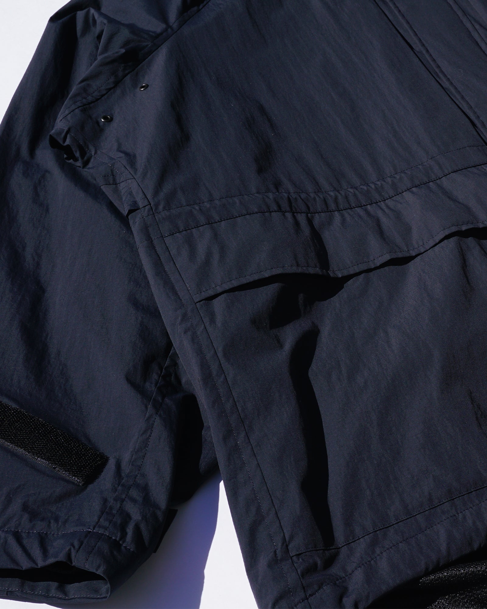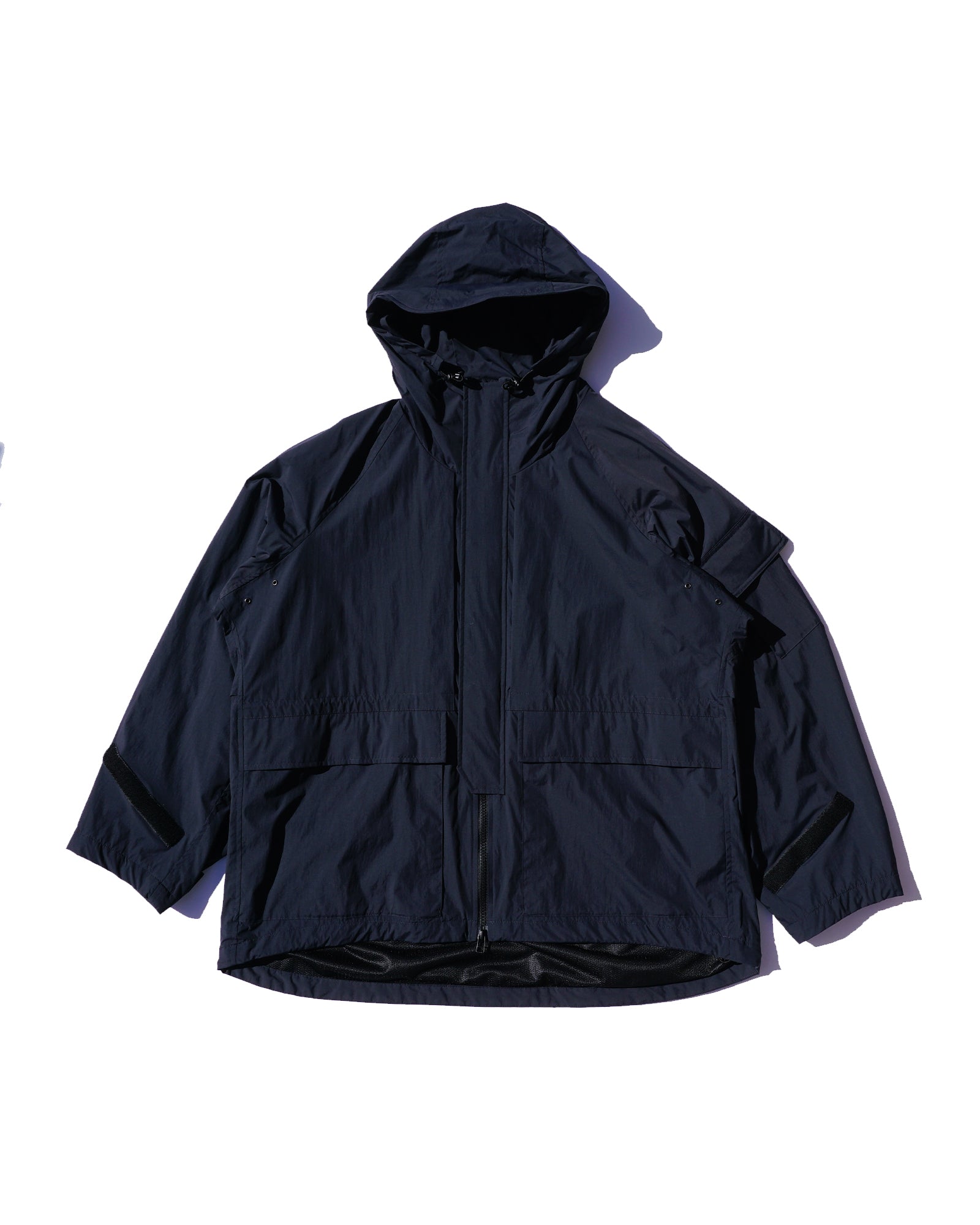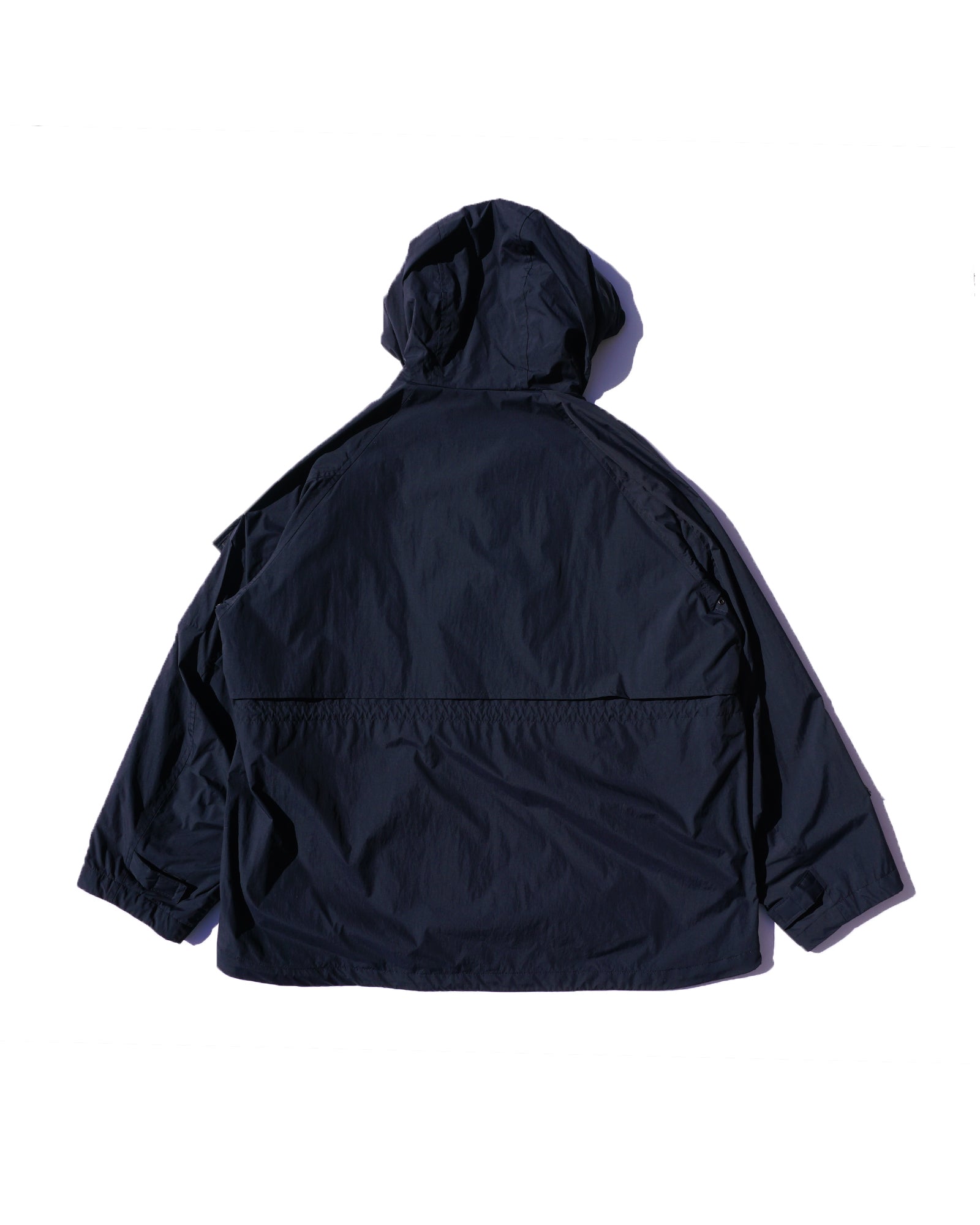 A high-performance nylon jacket with superior water-repellent and windproof capabilities. Made from taslan-processed nylon with a natural texture, it offers exceptional durability, water resistance, and wind protection. Designed for ease of movement, the underarm gussets and curved elbow construction enhance flexibility. The fit and breathability of the hood make it suitable for wear in rainy conditions.