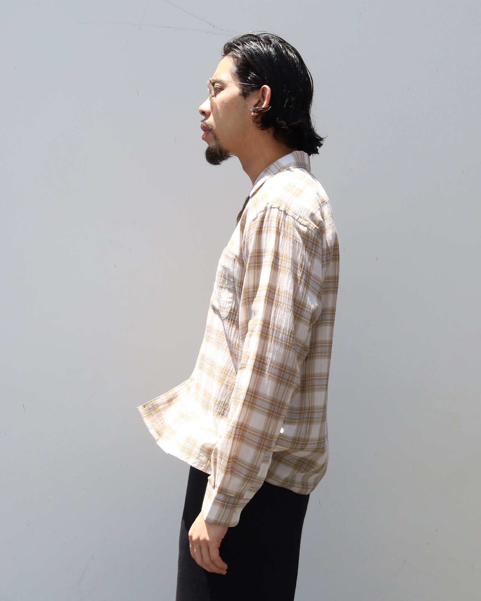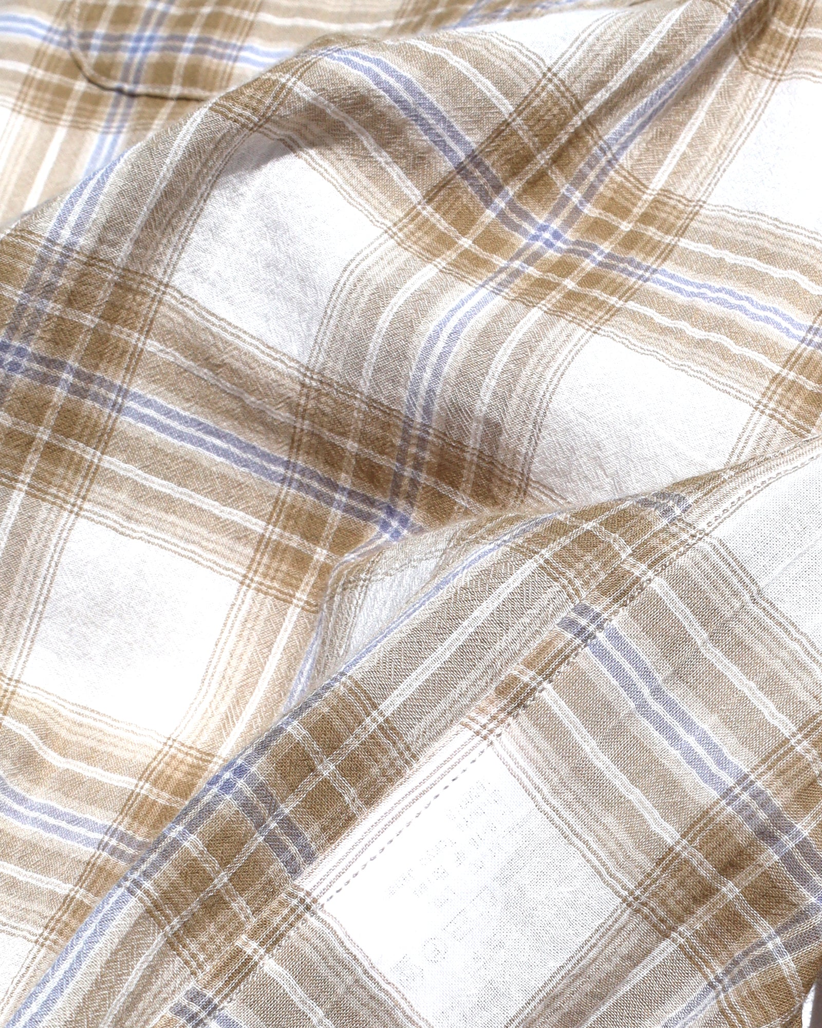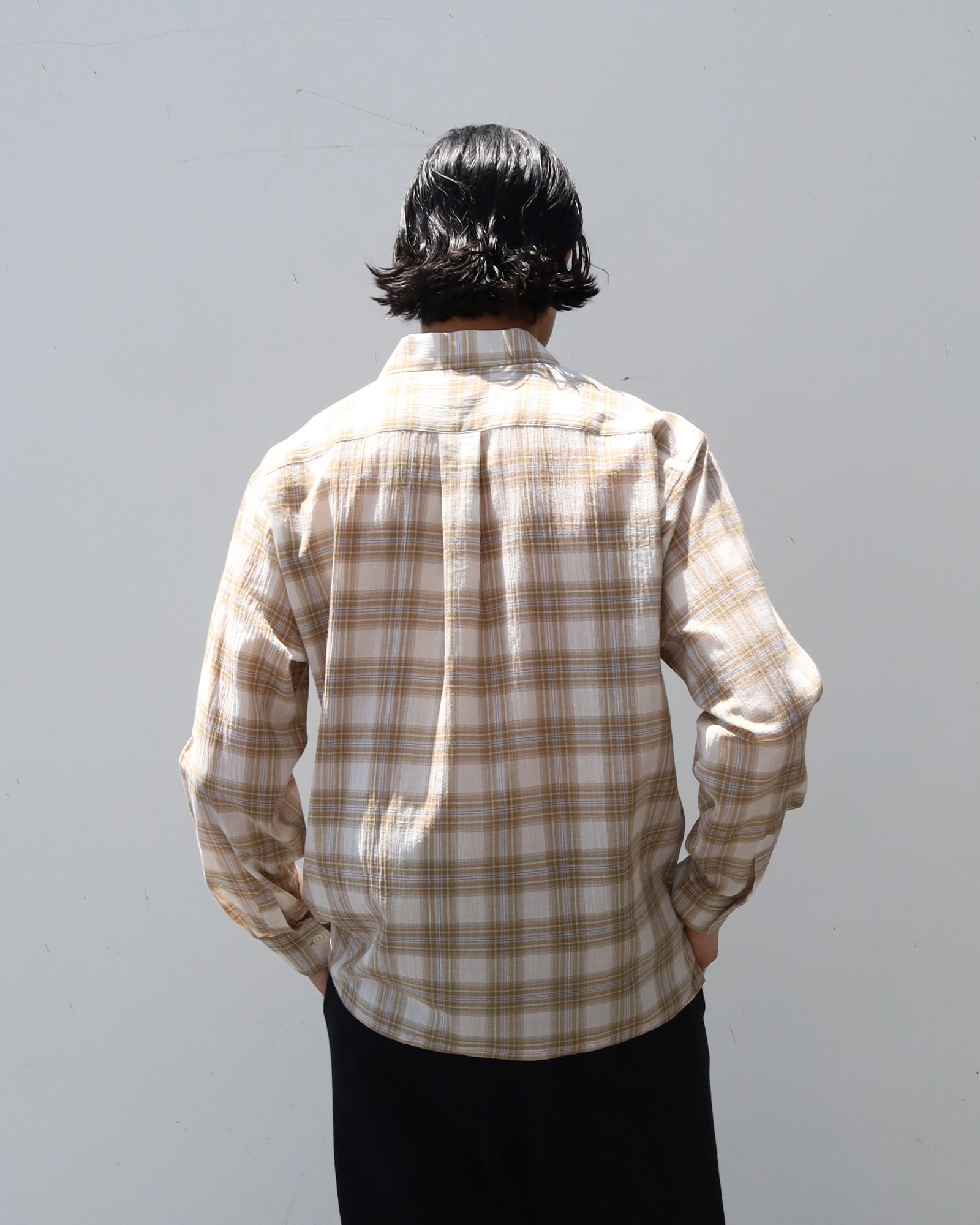 Lightweight and breathable, the Sheer Gauze Plaid Shirt is crafted from finely woven 100% cotton gauze. The fabric is airy and soft to the touch, making it ideal for warm weather. Despite its sheerness, the tightly woven threads reduce the risk of snags and offer added durability. The gentle plaid pattern and subtle color palette allow for effortless styling with a wide range of outfits.