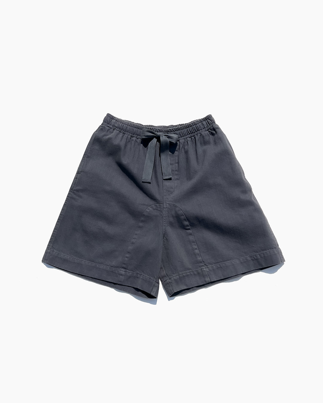 Relaxed wide leg short in our signature drapey twill. Front rounded seam detail and paneled construction elevate the look of this easy-on short silhouette. Pair back to our Pointelle Tank for a relaxed Summer look.