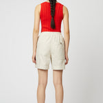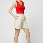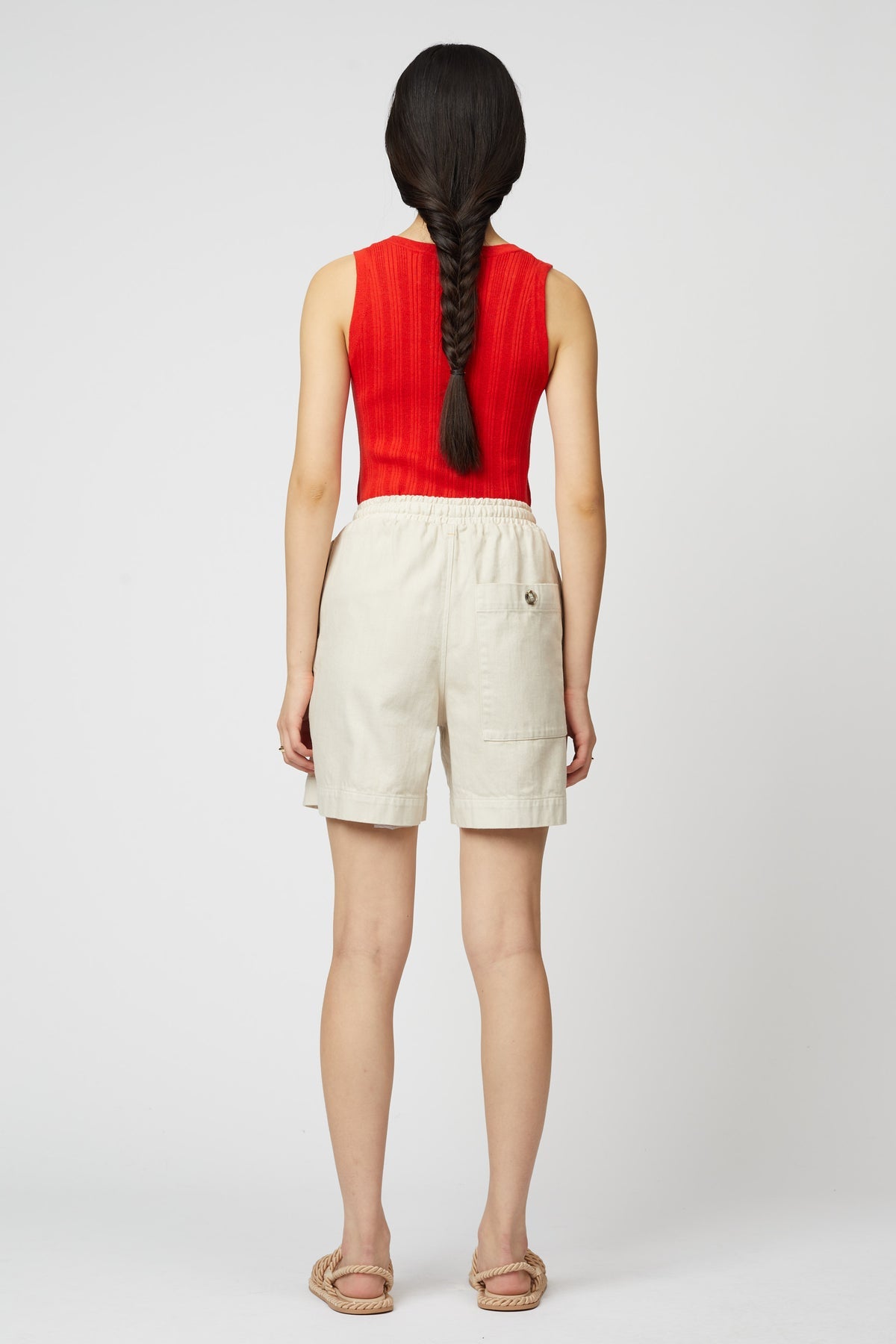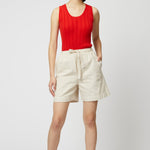 Relaxed wide leg short in our signature drapey twill. Front rounded seam detail and paneled construction elevate the look of this easy-on short silhouette. Pair back to our Pointelle Tank for a relaxed Summer look.