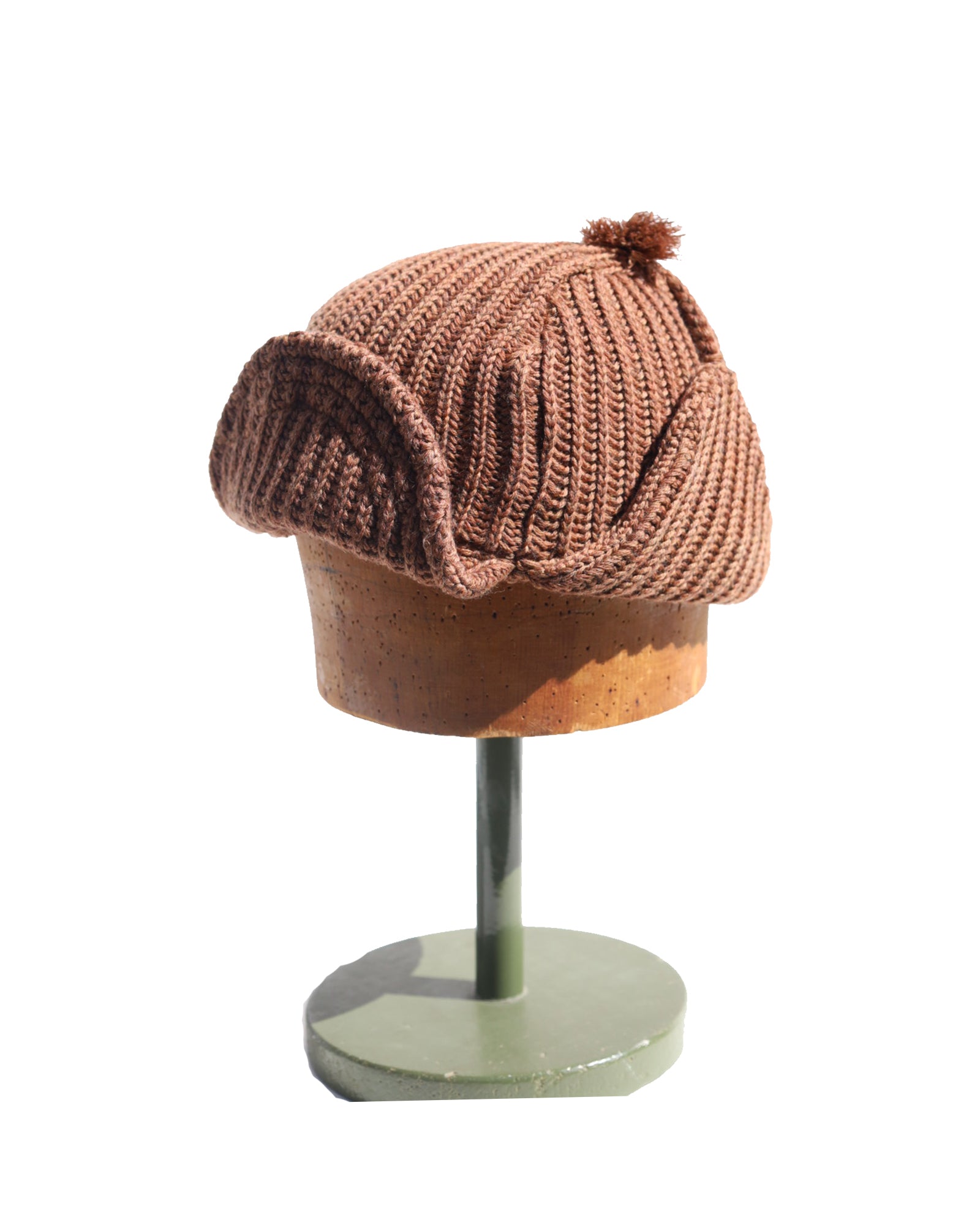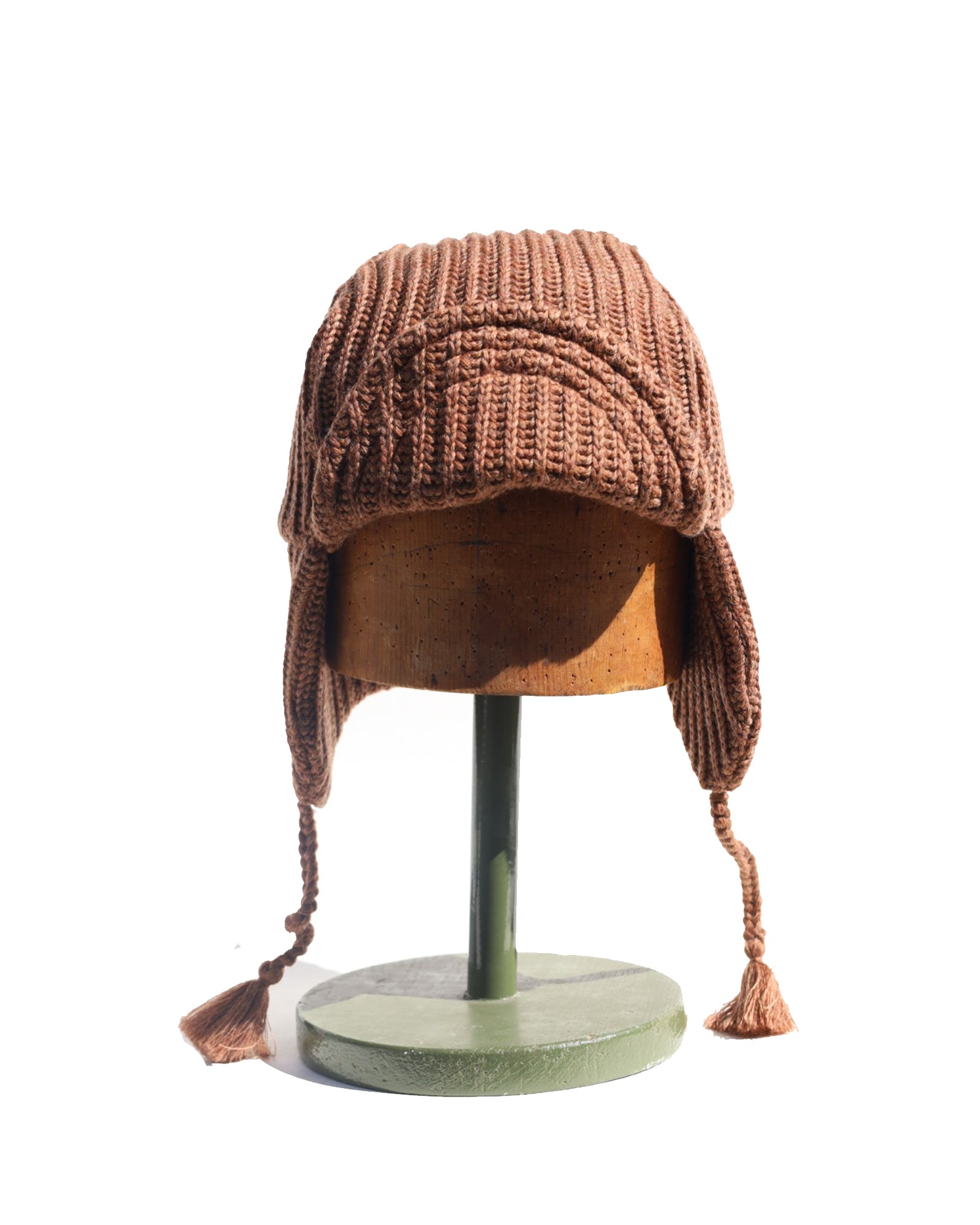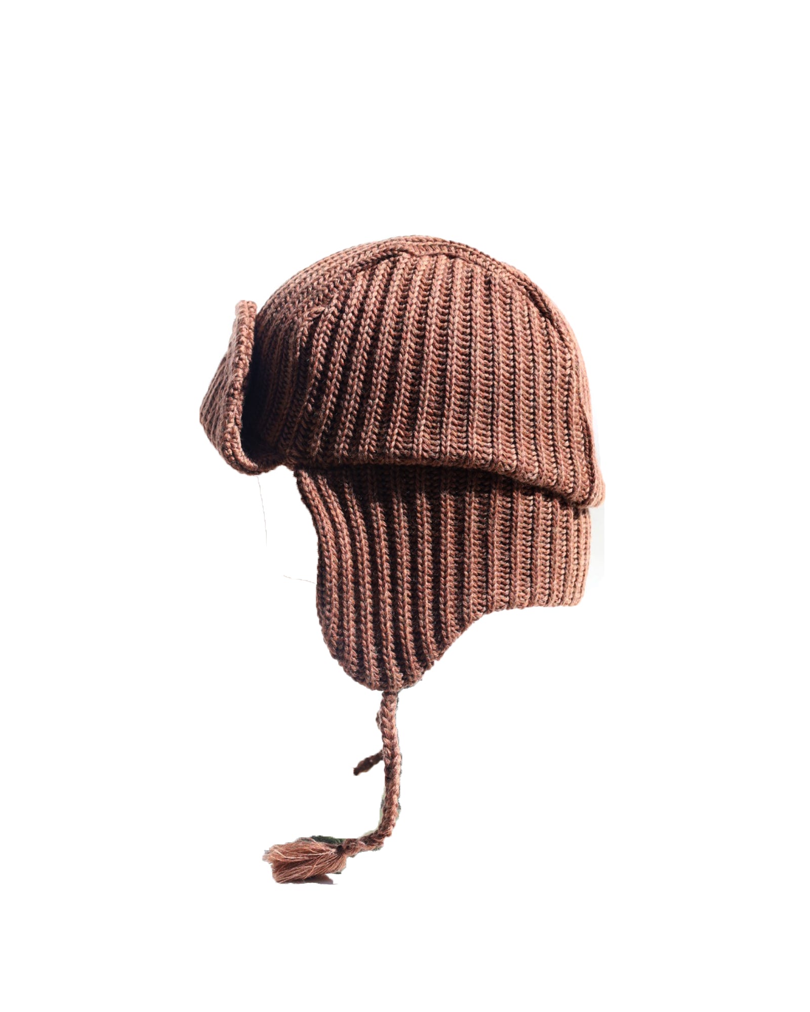 This knitted cap is crafted from fine merino wool, using an 8-ply yarn technique to achieve a soft and voluminous yet lightweight and comfortable design. The ear flaps can be adjusted up or down for versatile styling. Made in Japan.