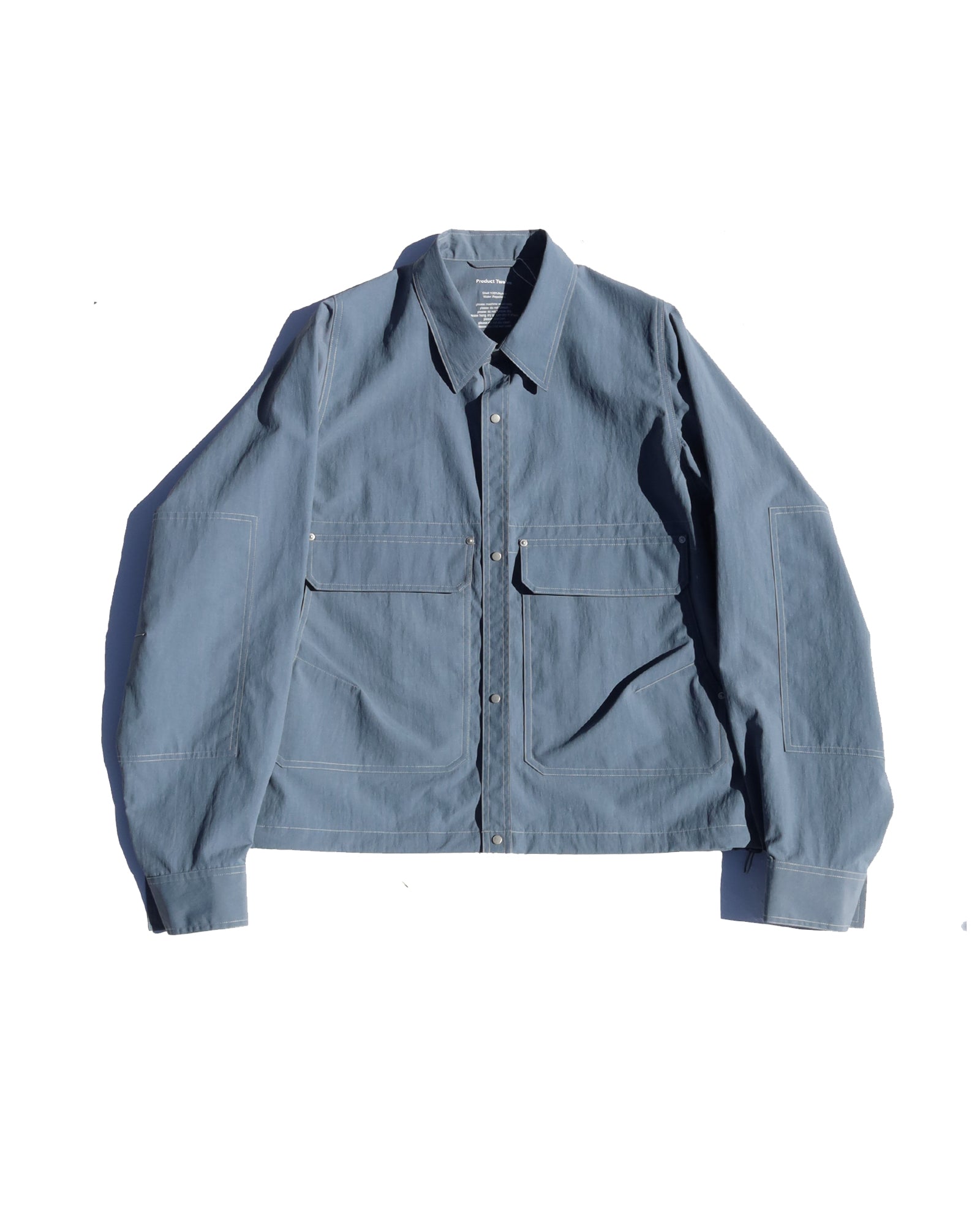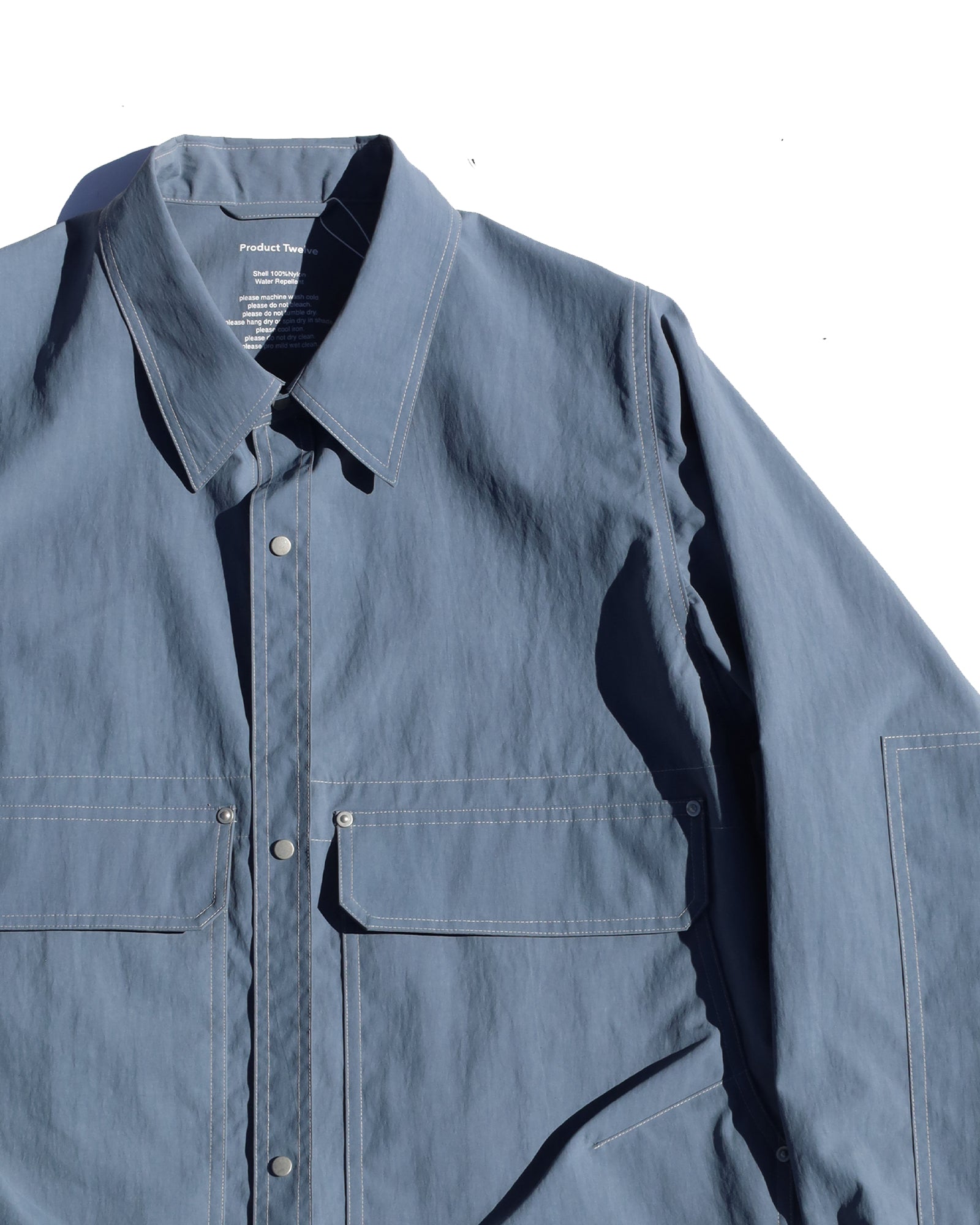 This water-repellent Work Shirt merges technical performance with vintage-inspired aesthetics. Made from nylon taslan tassar, the fabric is lightweight and strong yet offers a washed, cotton-like finish. Komatsu Matere’s “Dantotsu Water-Repellent” treatment ensures long-lasting protection, maintaining its water resistance through multiple washes. Designed with a hybrid sleeve construction and thoughtful darts for movement, it adapts seamlessly to both workwear layering and standalone wear.