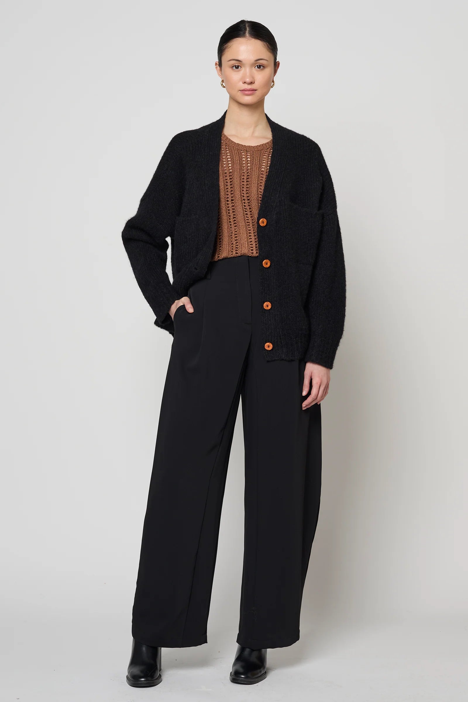 The Wylde Pant is a timeless wide-leg trouser with an easy, elegant shape. These trousers offer a serene drape and unparalleled comfort. Sits high at the waist with subtle front pleats and a relaxed fit through the leg. Simple, effortless, and always polished.