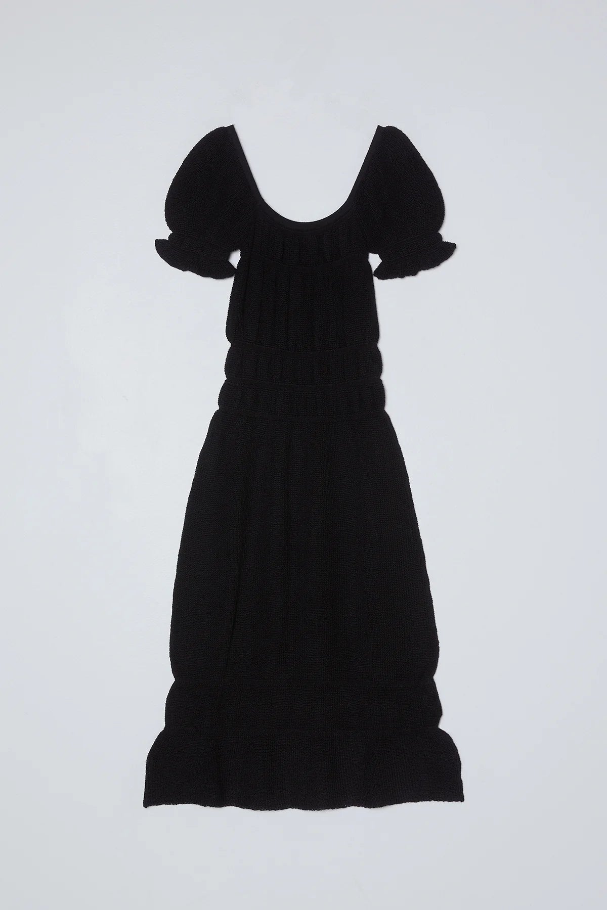 A bold, soft statement. The Zaia Dress has gentle texture and effortless drape. Designed with a square neckline, puffed sleeves, and soft gathering at the waist, it brings shape and comfort in equal measure. The flowing skirt and delicate knit make it a piece you can wear on slow days or special ones—always with ease.